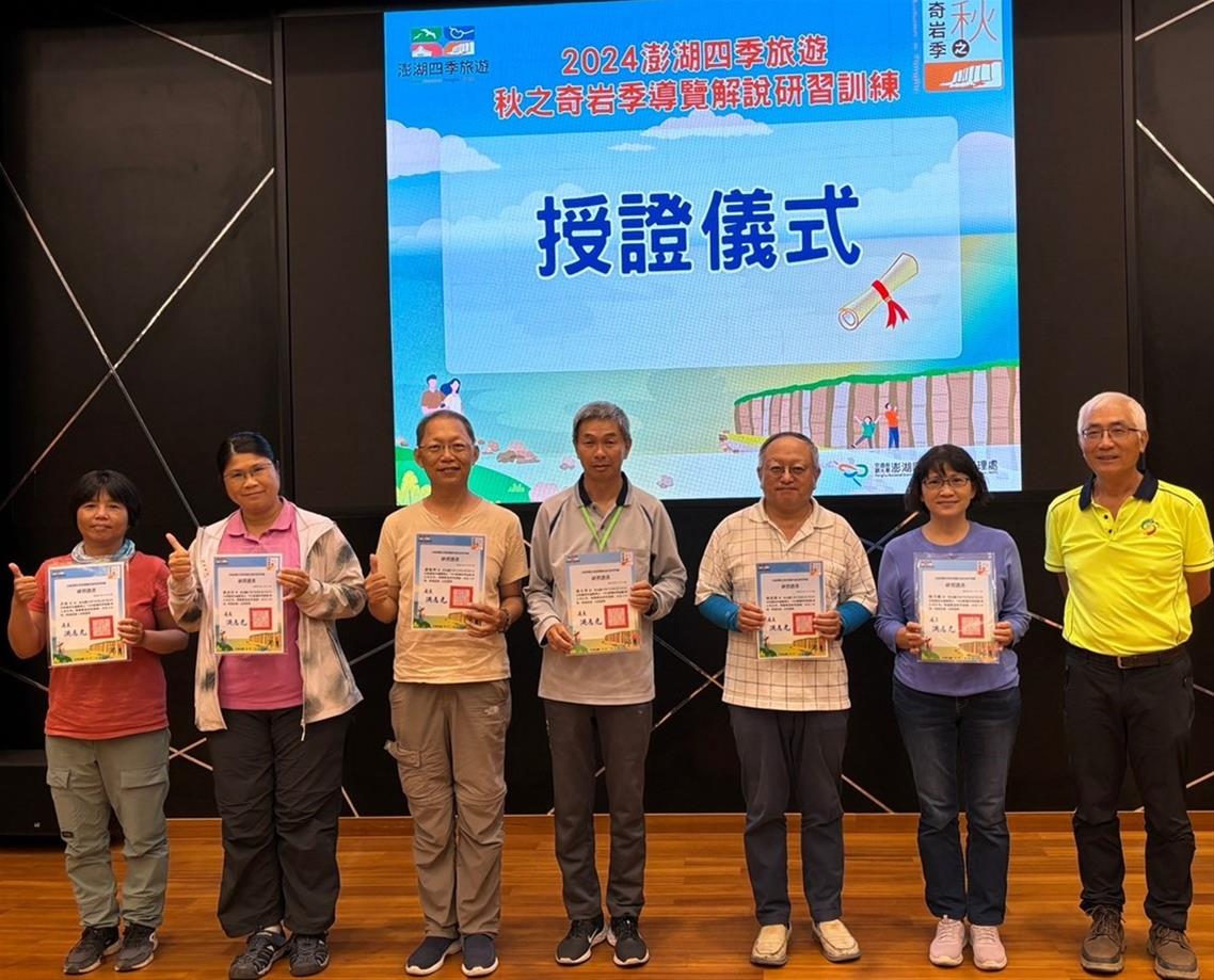 澎管處洪志光處長表示,各梯次透過二天計十二小時精彩的「秋之奇岩季-導覽解說培訓課程」並頒發研習證書,期許學員們能成為澎湖觀光業界的種子,一起為蒞澎遊客提供優質、溫暖、精彩的旅遊環境目標而努力。「2024澎湖四季旅遊」一系列活動,各具不同特色與魅力,精彩可期,接續之相關活動資訊,將於「澎湖國家風景區管理處」粉絲專頁及「澎湖國家風景區管理處」官網公告,歡迎有興趣的朋友們儘早規劃與安排。