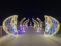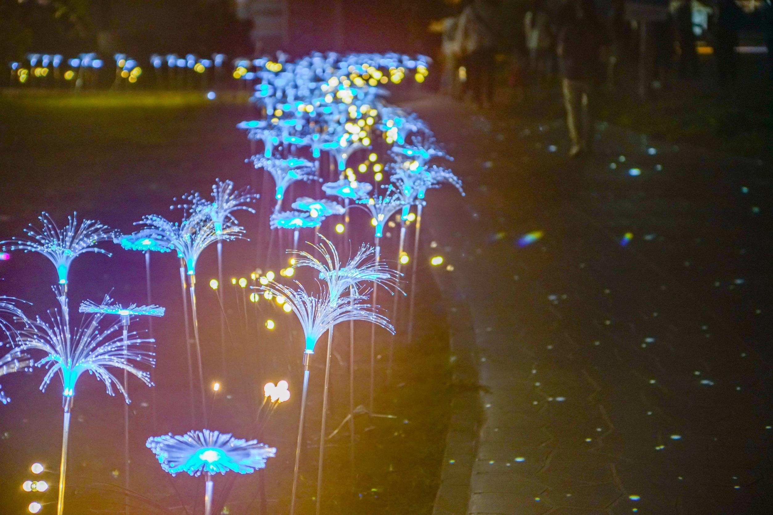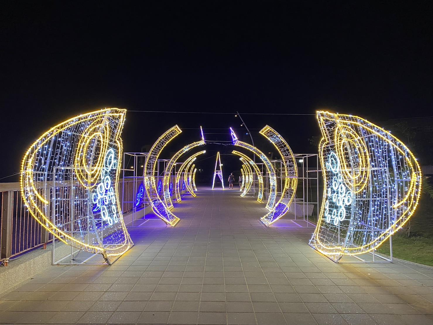 2023澎湖追風音樂節除了每週六的音樂展演外,還有以獨特海風為號召的光環境-光島盛典,來到「海中精靈」在夢幻的澎湖海底世界,鯤鵬展開雙翼,在無邊無際的海洋中穿梭,在蔚藍的空中無拘無束的翱翔。在清代時期,就有著關於海底神獸鯤鵬的傳說,祂的存在象徵著無限的力量與強大的智慧。無論大海橫流亦或滔天巨浪,祂如同母親般張開祥和雙翅擁抱狂怒的海洋,守護著島嶼上的子民,與美麗的海洋共榮共存。接著走到「山間精靈」,你知道嗎,澎湖有座蛇頭山,它被列為全台小百岳的第一百座山峰,蛇頭山的視野遼闊、海景絕美、並擁有豐富的歷史遺跡等無可取代的特色。在澎湖秋季盛典山間小精靈也慕名而來,帶著山間的祝福,期待民眾來到澎湖一探澎湖小百岳-蛇頭山的美。接著來到「光廊-海光飛舞」彎彎月光下,蒲公英在歌唱~~在漸暗的海灣上,月光漸亮讓澎湖成為海灣中最閃耀的星光,勾勒出最浪漫的海島風情,魚兒躍出水面和月光結合,走進海光飛舞漫步,感受秋季澎湖的夜晚。