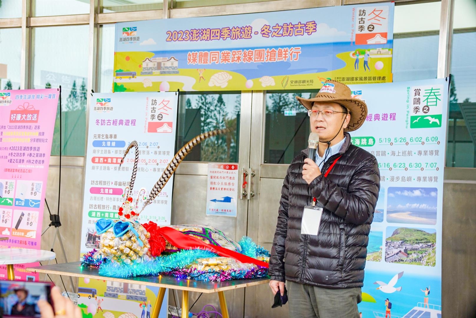 「2023澎湖四季旅遊-冬之訪古季」,將是啟動整年觀光列車的重頭戲,為增加行銷宣傳廣度,澎管處特於1月17日辦理「冬之訪古季」經典遊程之踩線體驗活動,當日亦邀請來自台灣及澎湖地區之媒體先進及旅行同業等一起共同參與,此次踩線及體驗內容特結合澎湖特有傳統產業及節慶文化,除了安排了解漁村敲魚乾及澎湖元宵肪片龜製作之實地體驗等,並透過專業導覽解說深度走訪菓葉灰窯、二崁古厝群,更特別的是參觀新興秘境西嶼彈藥本庫銅牆鐵壁與清涼彈藥庫等。