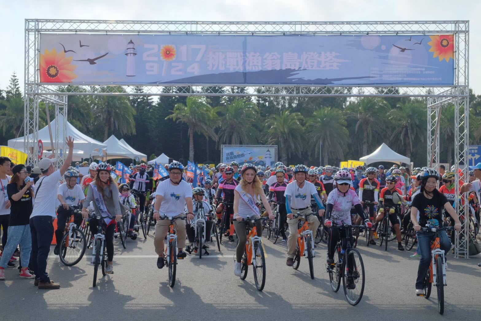 交通部觀光署澎湖國家風景區管理處為促進澎湖秋冬的觀光旅遊產業,今年推出「澎湖秋瘋季」系列活動,特別舉辦多項大型的觀光運動賽事,24日上午8點在澎湖遊客中心盛大展開「2017挑戰漁翁島燈塔101K自行車活動」,現場邀請2017全球旅遊皇后佳麗與來自全台近千名車友參加,一起享受秋風時節澎湖在地的風景與文化。