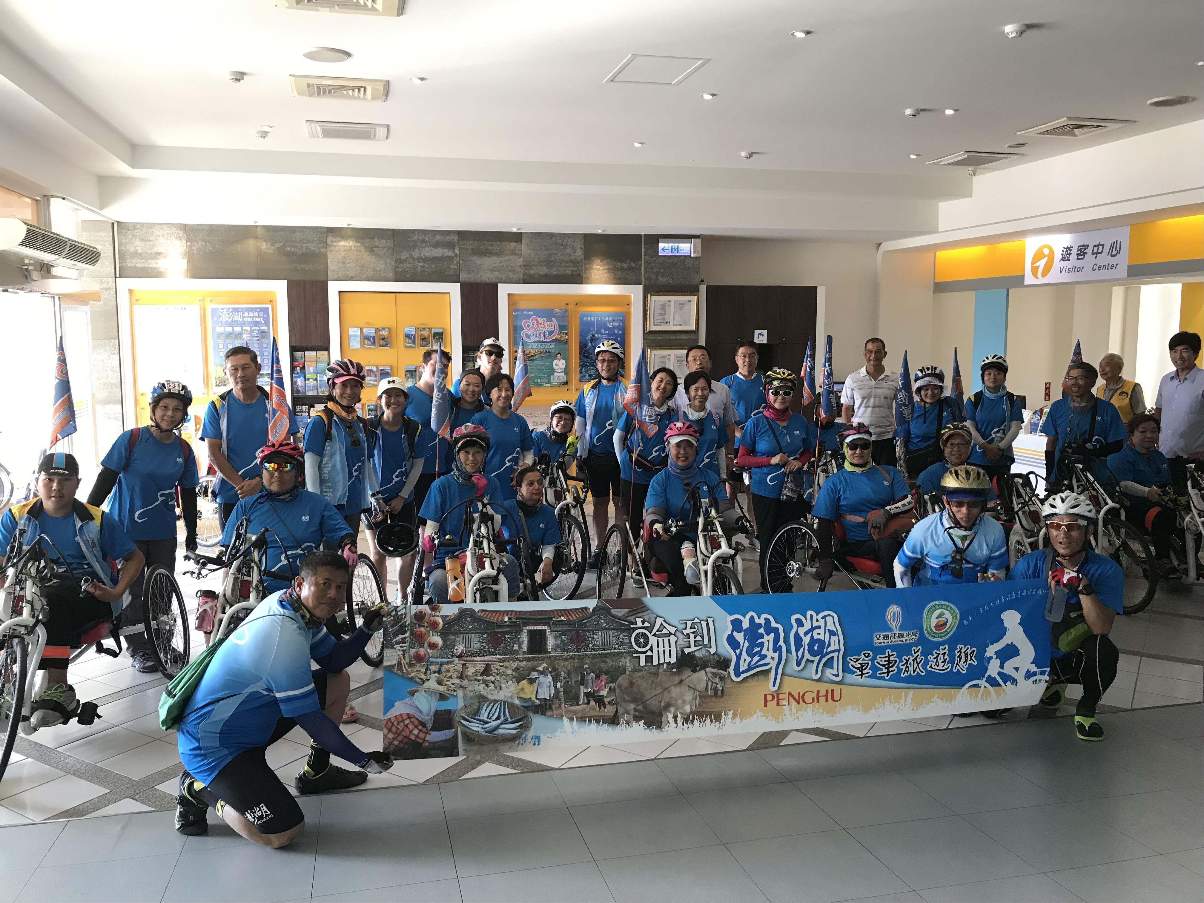 為迎接這批熱血騎士,展現澎湖人在地熱情,澎管處在澎湖遊客中心辦理一場溫馨的接待與迎賓儀式,副處長洪志光表示:澎湖擁有車友讚許自行車最輕鬆慢活舒適的環境,澎湖道路平坦、陡坡小、車輛少,沿途海景優美、變化最多元,沿路的無障礙服務設施完善,是最優質及具國際級的旅遊環境;除此,為使車隊在過程中給予最佳的服務,更商請澎湖自行車協會許榮基及謝再生等2位前、現任總幹事全程協助,希望導入貼心的領騎服務能讓大家瞭解澎湖無障礙旅遊環境的友善程度,以便日後安排更多的身障朋友來澎湖體驗跨島馭風樂趣。
