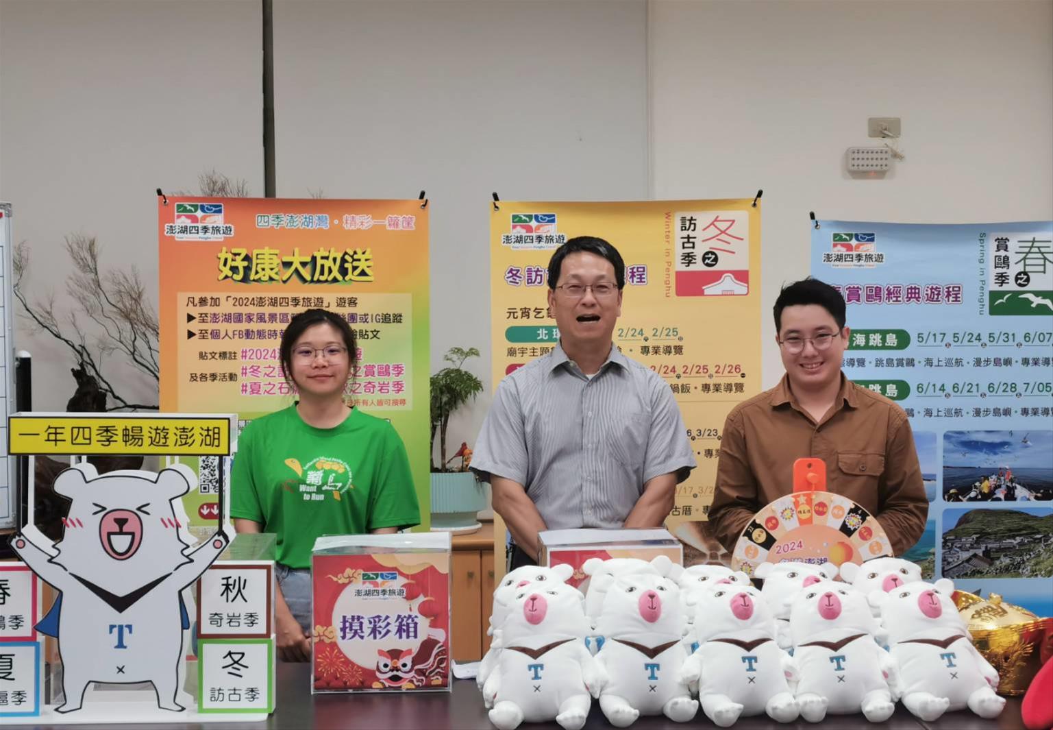澎管處表示:為了帶動澎湖疫後的觀光旅遊活動,特規劃以「澎湖四季旅遊」為行銷主軸,將澎湖獨特的生態資源,整合推出一年四季皆可遊玩之遊程,包含冬-訪古季、春-賞鷗季、夏-石滬季、秋-奇岩季等豐富的內容,希望能以嶄新的澎湖觀光意象與品牌,創造整年度觀光熱潮,期振興活絡澎湖地區各產業之復甦。「2024澎湖元宵暨冬之訪古輕旅行」系列活動,為啟動整年觀光列車的重頭戲,為增加行銷宣傳廣度,特辦理集章抽好禮活動,期讓冬季及元宵年節來到澎湖的旅客可以享受更超值、更有品質的深度之旅!