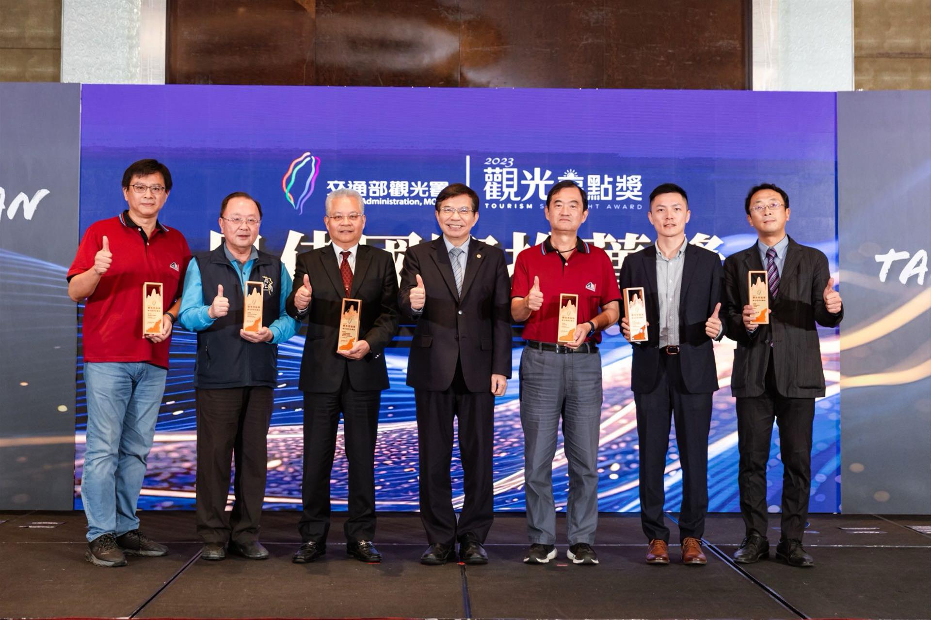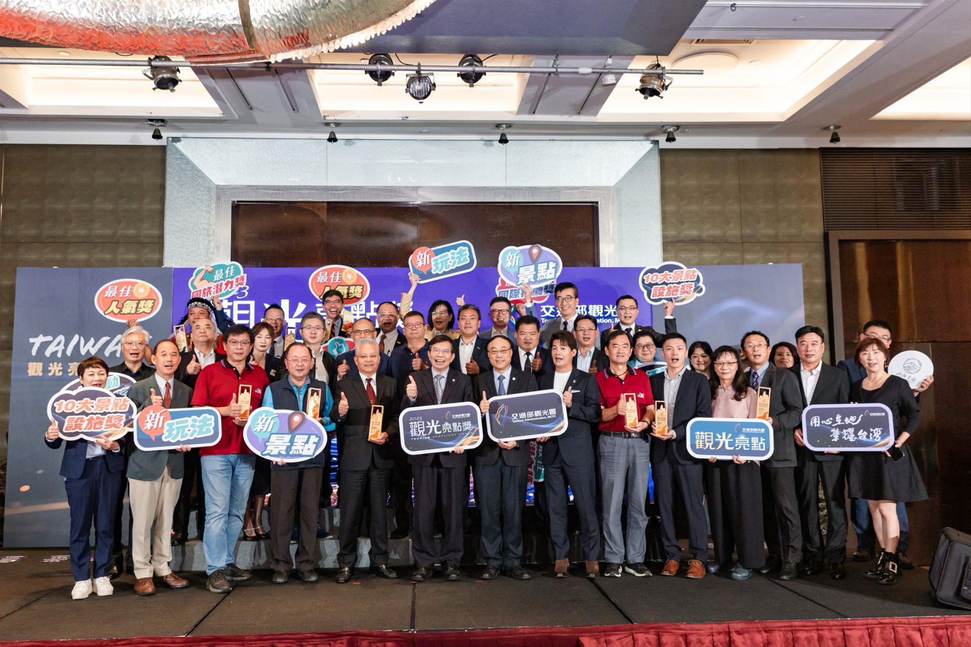 由交通部觀光署首度舉辦跨部會的「觀光亮點獎」評選活動,全臺共有42個政府機關、123個景點及體驗活動報名參賽,經過第一階段全民網路票選投出近200萬餘票及專家學者書面評選激烈競爭後,共36個觀光亮點入圍。後續經由18位產、官、學界所組成的評審團,在盛暑熱氣中展開全臺巡迴踏勘,共選出18個獲獎觀光亮點推薦給國內外遊客,並於今日(12月15日星期五)上午10時30分假台北君悅酒店3樓凱悅廳舉行公布暨頒獎記者會,交通部王國材部長親自頒發各亮點獎于獲獎單位。