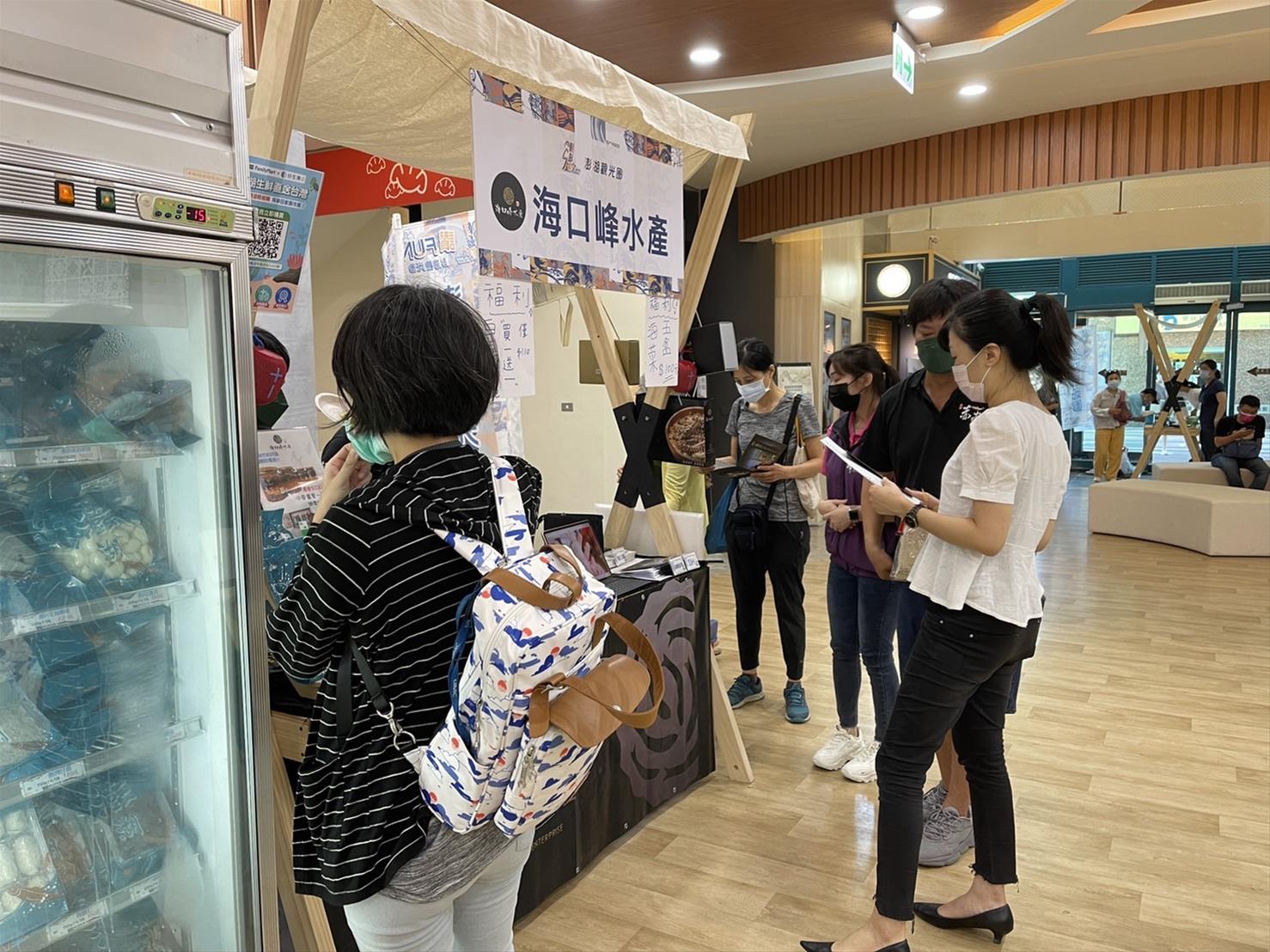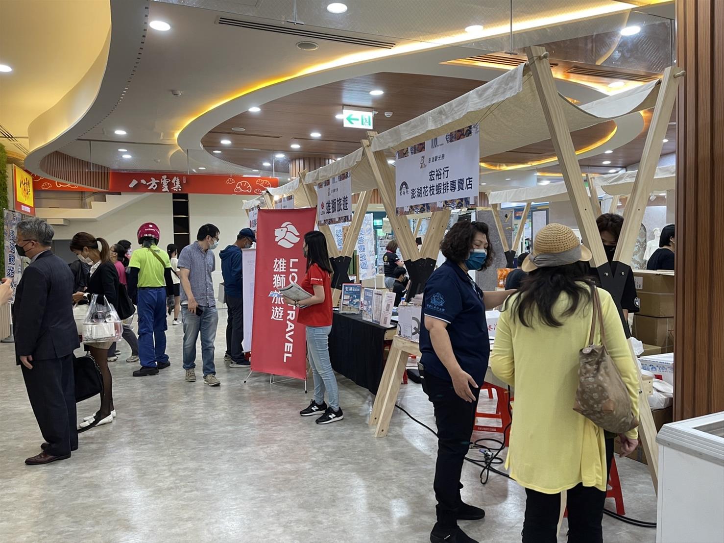 本次跨域行銷展售會共號召了包括海口峰水產、宏裕行澎湖花枝蝦排專賣店、澎湖伯伴手禮、太祖堂澎湖一條根、典醬家食品、信興名產、澎福古棗味、潮澎湖、雄獅旅遊等9家觀光業者到場展售澎湖嚴選美食、特色行程及在地伴手禮,現場產品琳琅滿目,包含知名產品:澎湖水產、花枝丸、花枝蝦排、月亮花枝蝦餅、黃金魚皮、魚子醬拌麵、椒鹽蝦餅、仙人掌果醬、燒卷、風茹花茶、蛋捲、手工麵線、鹹餅、花生酥、海苔酥、菊花餅、澎湖花生、干貝醬、仙人掌果醬、仙人掌酒、花生醬、四季禮盒、XO醬米香、黑糖米香、柑橘米香、檸檬米酥酥…等,每一項產品都獨具特色,讓現場人員嚐到濃濃的澎湖海滋味。