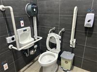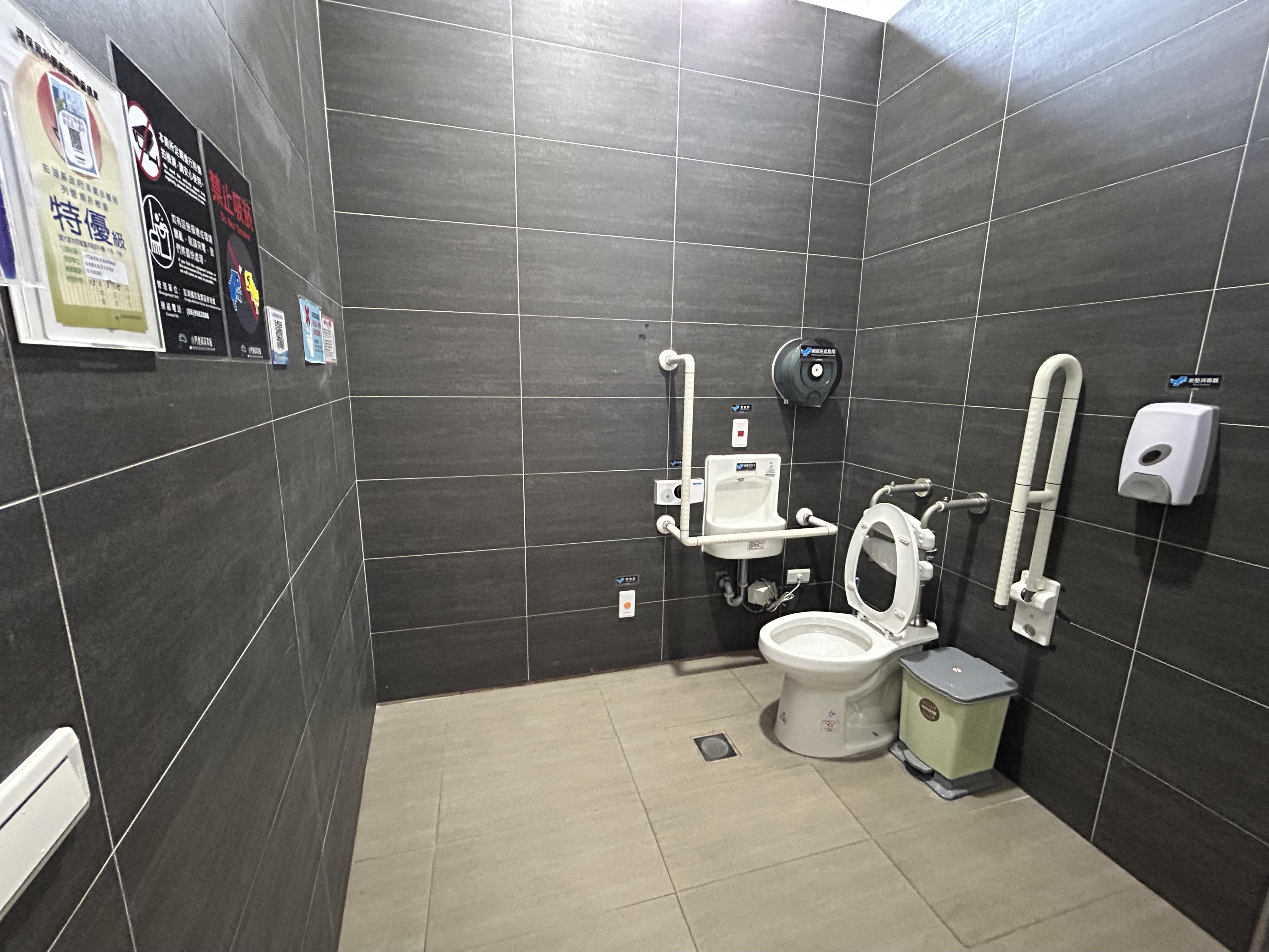 澎管處所轄之「小門地質探索館公廁」內部融合在地地質特性,採用深色牆面設計,並結合館內恐龍造景,使用恐龍造型做成各式創意文宣宣導。另為提供公廁更多元服務,提供感應式水龍頭、免治馬桶及兒童安全座椅服務。亦結合全天候維護管理策略,於廁間內張貼設施報修QR-code系統,使民眾在廁所使用上有任何問題,管理者能及時處理。