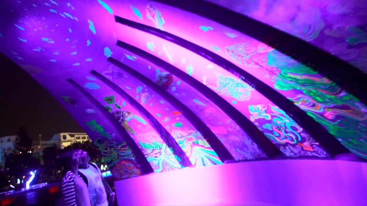 不只音樂,園區內藝文燈光閃耀,由繪畫藝術家祁孟含、許智陽以螢光顏料刻劃的「迷走海底隧道」,以澎湖在地的海洋生物及珊瑚礁石為發想,融合了海洋圖騰、自然圖騰及藝術家想像的神秘色調給予這塊土地神聖的祝福,白天是色彩繽紛的海底世界,晚上螢光結合燈光搖身一變成為耀眼、充滿生命力的海底世界,不只如此,更有其他主題展示,每日點燈時間為晚間19:00至21:00,逢週六展演延長至晚間21:30,邀您一起看見澎湖燈光絢爛下,熱鬧非凡的海底世界。