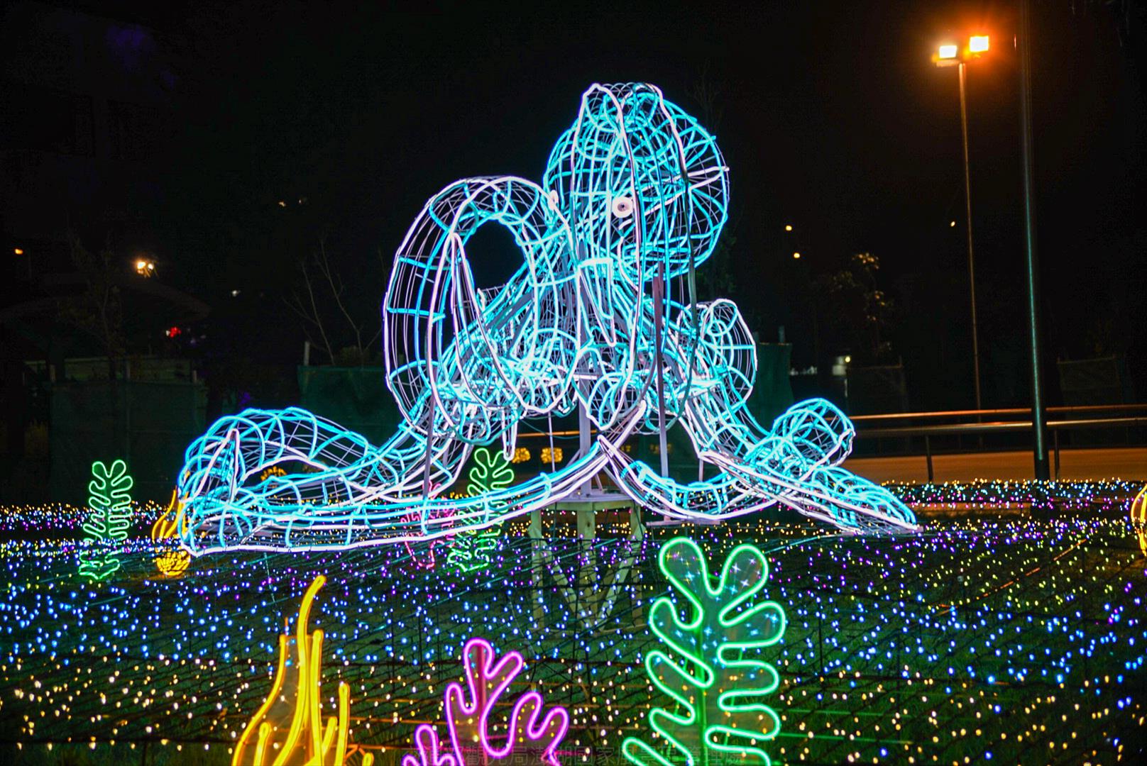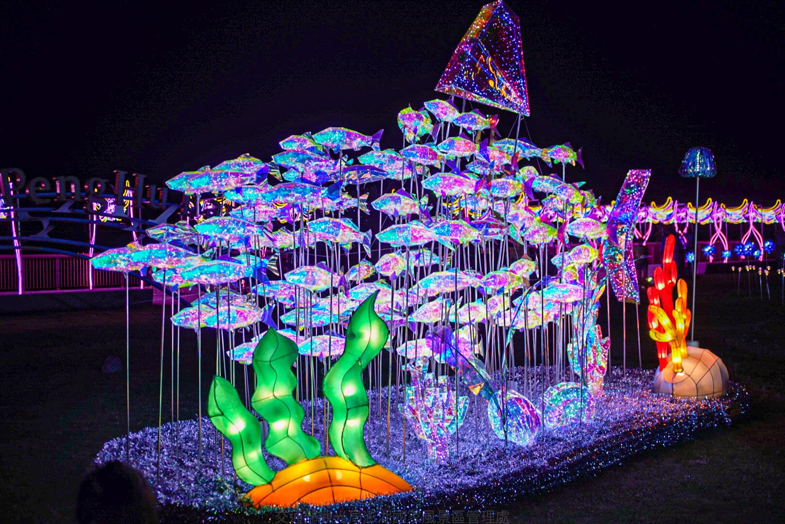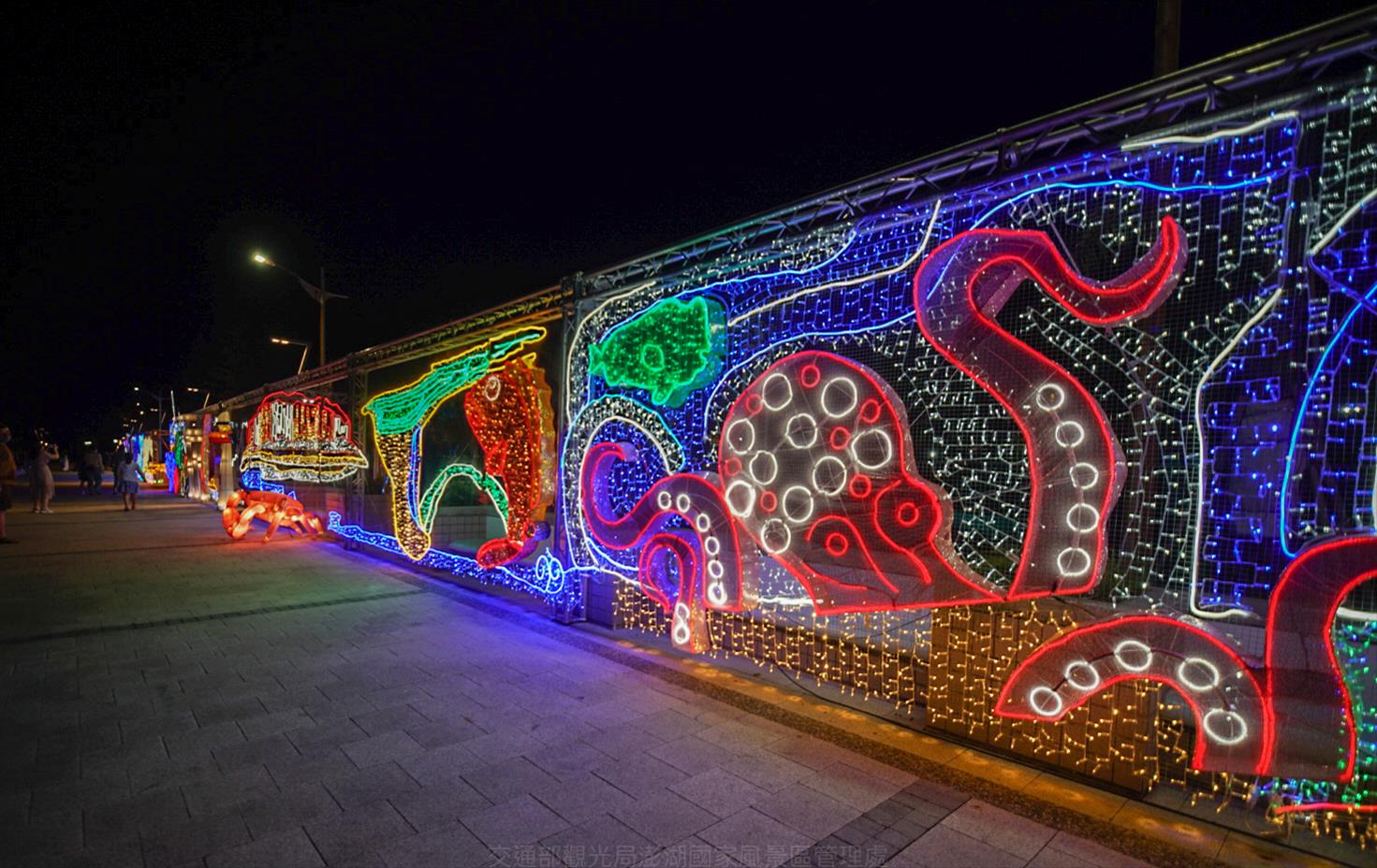 設計團隊(可平方工作室)以澎湖的夜空為畫布,海浪拍打著岩石,五顏六色的霓虹燈帶的圓形變化和光影的相互作用與銀河中的星星相呼應,營造出美麗明亮的夜晚,澎湖追風音樂節集音樂、風、光於一體,呈現一場光與幻想的音樂盛宴,五彩繽紛的霓虹燈下,各種造型各異的物件交織在一起,與澎湖當地的文化藝術資源融合。設計團隊規劃了每幅充滿意義的燈光畫作,例如章魚讓人想起澎湖居民的傳統活動「夜照章魚」,「魚魚共舞」展示了一群魚在海洋中移動,光線反射著大海的美麗波濤洶湧,就像陽光一樣,魚兒的聚集意味著團結對抗入侵的意義,燈光反射出大海波光粼粼的美麗波光,猶如陽光一般,魚群的聚集寓意著團結一致抵禦侵略。設計團隊巧妙的將在地故事與光相結合,加深遊客對澎湖的了解,讓他們在藝術中看到人、在地文化、自然之間的聯繫。