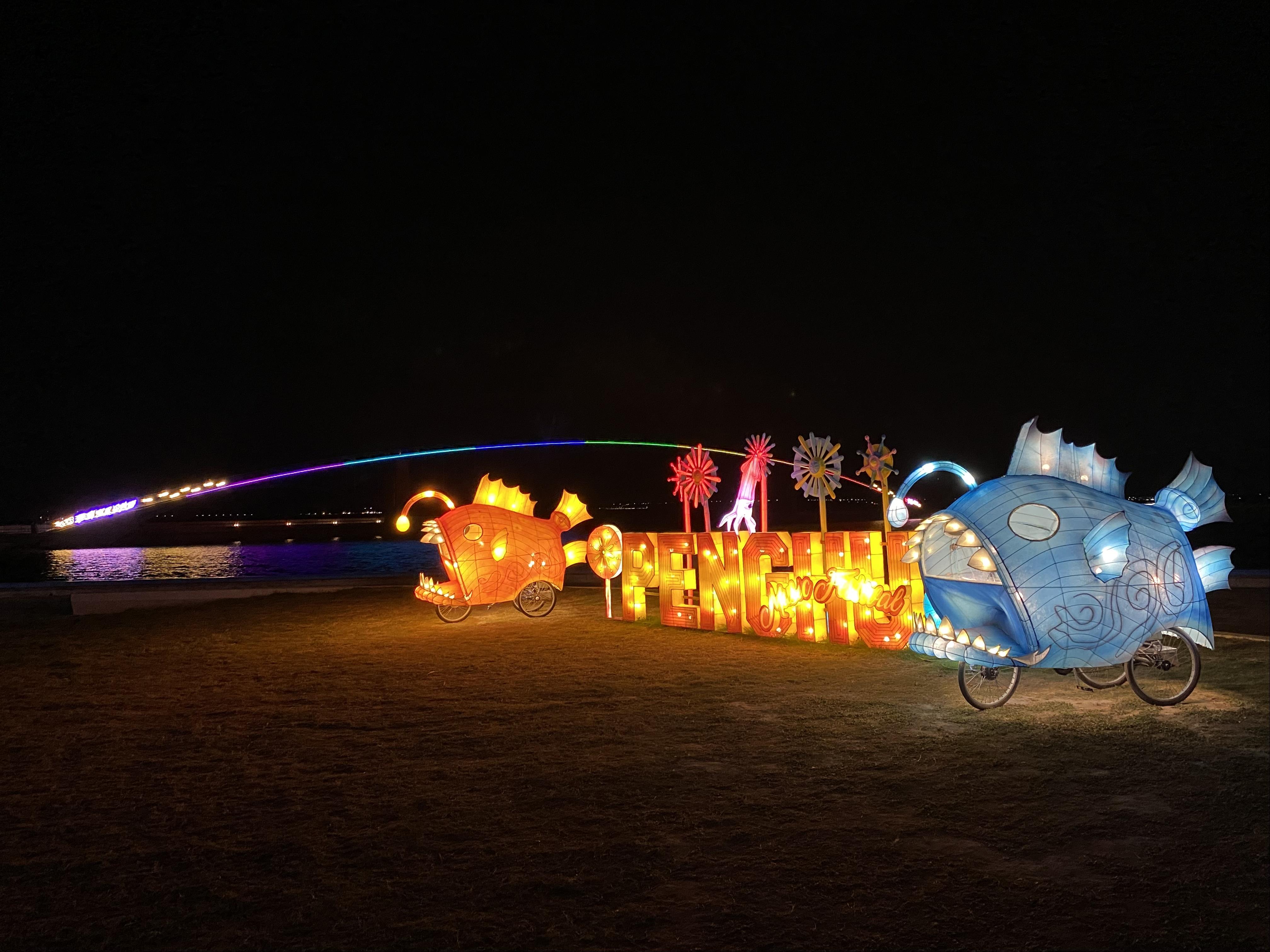 2023澎湖追風音樂節除了每週六的音樂展演外,還有以獨特海風為號召的光環境-光島盛典,來到「尋寶之旅」可愛的探險龜出現在草地上,拿著望遠鏡朝向前方,為大家指引寶藏方向,帶領大家一起探索澎湖海洋寶藏,快跟上探險龜的腳步,一起尋寶吧!哇!燈籠魚在動!「行動裝置藝術-不思議旅程」取材自巴西嘉年華花車,為結合澎湖地景文化藝術的動態燈組,跟著可愛的花車悠悠漫步在海岸走道,感受徐徐海風吹拂過臉龐,藉由作品、意象帶著大家前往最熱情的殿堂,體驗澎湖美好的夏日風情。