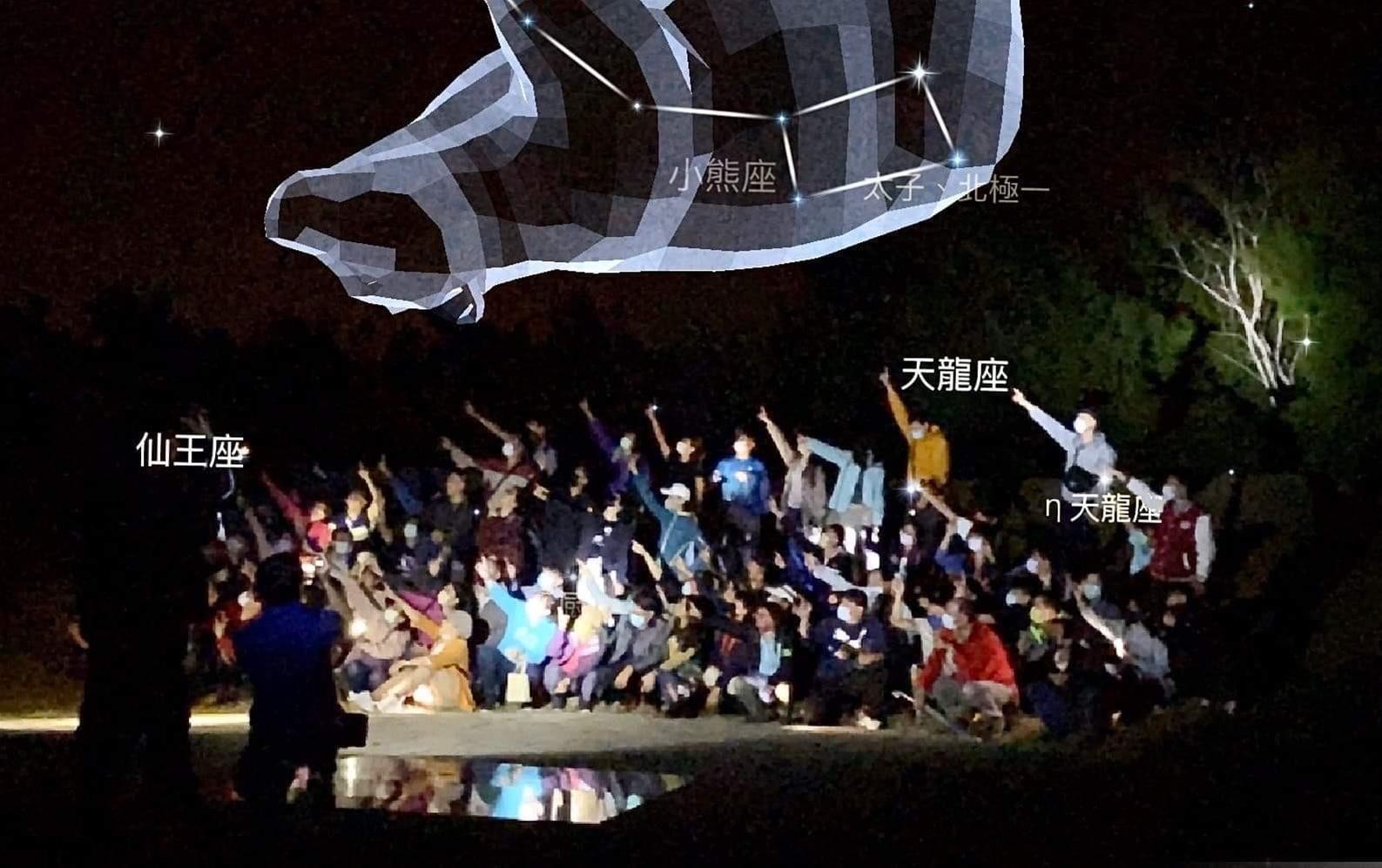 為推動生態永續旅遊環境,促進澎湖地區觀光產業之多元發展,澎管處特別邀請國立自然科學博物館科學教育組黃國斌講師及臺北市立天文科學教育館鄭景仁、陳素芬解說志工蒞臨授課,講授內容包括淺談星空探索、從地球看星空、遨遊天際~四季星空導覽、如何使用App軟體觀星、戶外星空導覽等,引領學員進入一場星空旅遊冒險。其中活動一大特色,是於山水星空廣場觀星,擁有遼闊草坪、休憩涼亭、觀景台,並可將湛藍大海盡收眼底,是天然無光害,能觀賞滿天星斗的最佳地點,課程時雖有雲層遮蔽星空,但透過老師對於觀星App深入淺出、生動活潑的導覽解說方式,使參與學員瞭解到天文不會那麼艱澀難靠近。