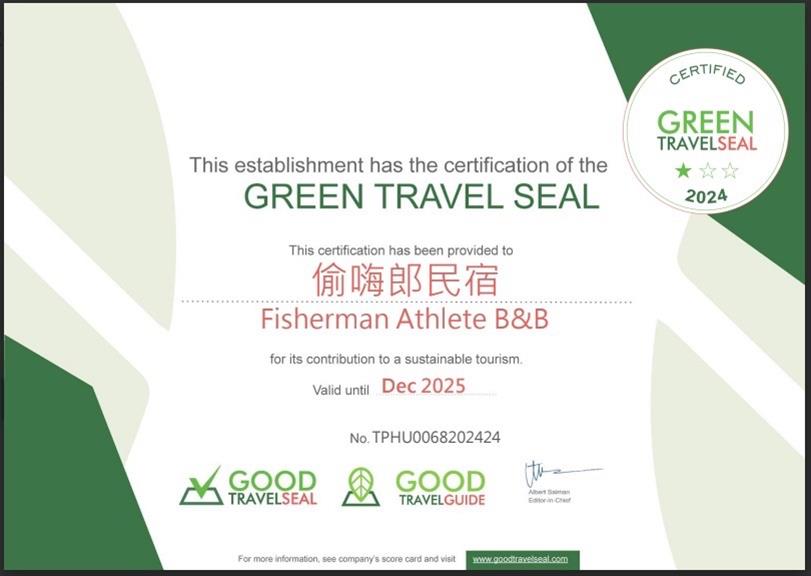 綠色旅行標章為荷蘭「Green Destinations B.V.公司」創立的標章制度,屬第二方認證系統,主要在協助旅遊業者/組織建構檢核機制,確保其對於環境保護、社會責任及安全健康做出努力與承諾。該認證程序公開透明、涵蓋性廣,為接軌全球永續旅遊最佳的入門工具。而其與國內目前推行的環保旅館認證最大的差異,在於其涵括綜合性考量,除了重視監控資源消耗數據及對於節能設施的嚴格要求外,更著重在地特有的文化體驗、永續意識傳遞,以及與地區業者的串連。這意謂著獲得認證的業者不僅要確立自身企業的發展目標,更需要積極參與當地社區的發展,推動在地文化的保存,以此落實「共好、永續」的理念。期待未來有更多業者加入,攜手創造澎湖永續旅遊環境!