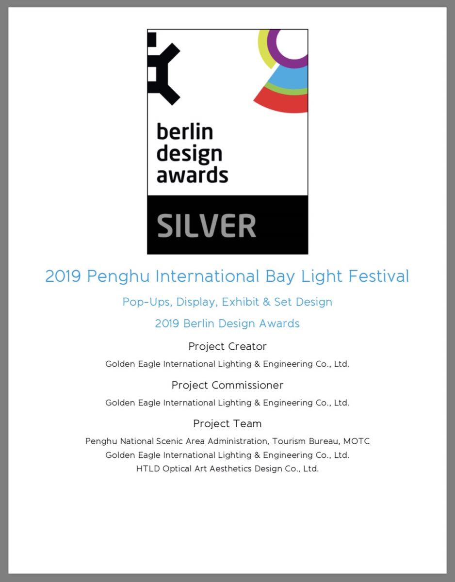 澎湖國際海灣燈光節今年首次擴大舉辦屢創國際佳績,燈光裝置藝術「隱匿之海」榮獲「2019年布里斯本設計展覽設計類-金獎」,整體燈光活動策展更獲得「2019柏林國際設計大獎賽」銀獎之肯定,澎湖國際海灣燈光節紅到國外去!成功為澎湖打響國際知名度。