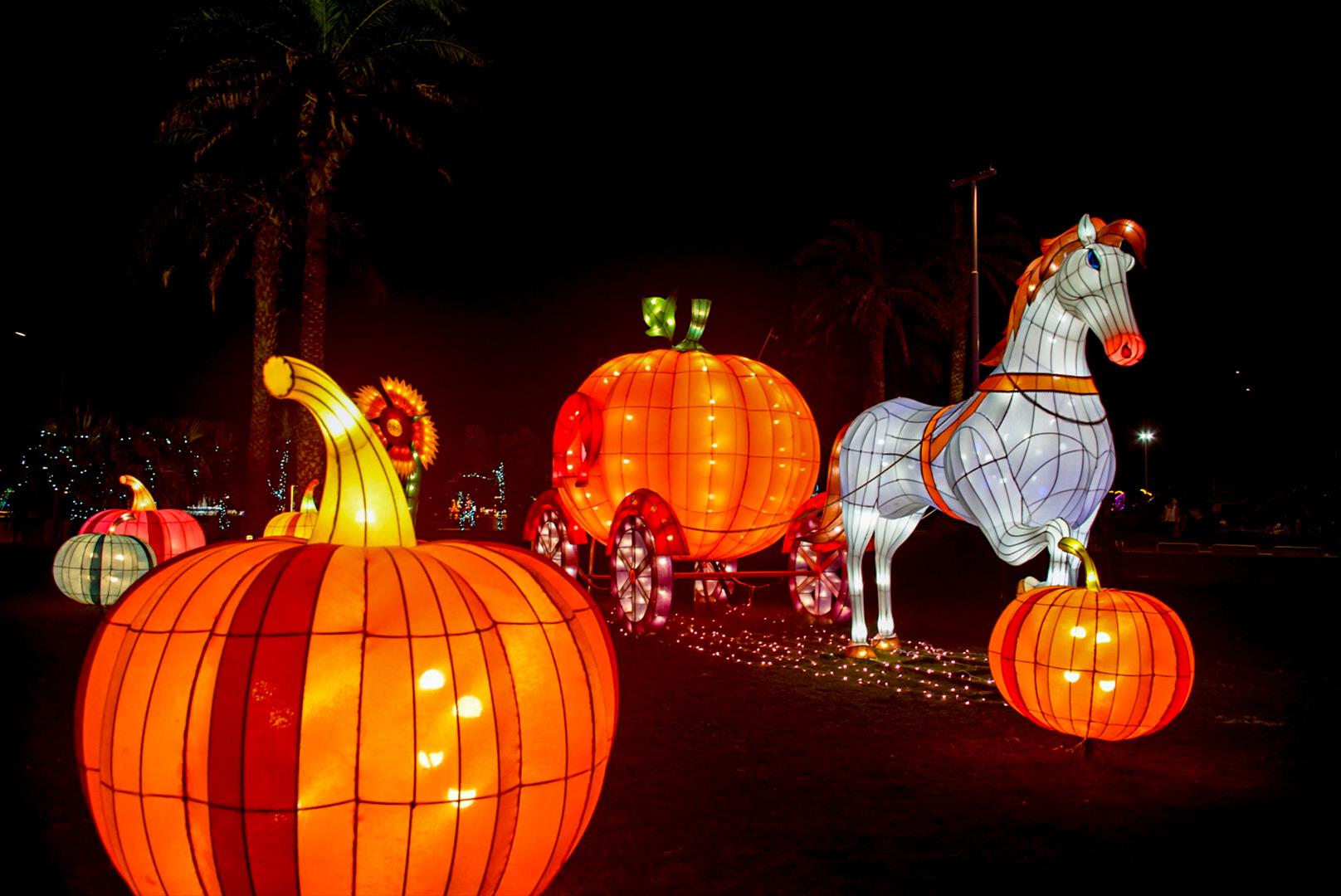 會呼吸的天人菊,感應花朵,是互動燈組設計。當你靠近時,天人菊像陽光下的鮮花,毫不羞澀的綻放…南瓜馬車慢慢行,乘載著幸福與童年夢想,探索童話世界的奇妙。