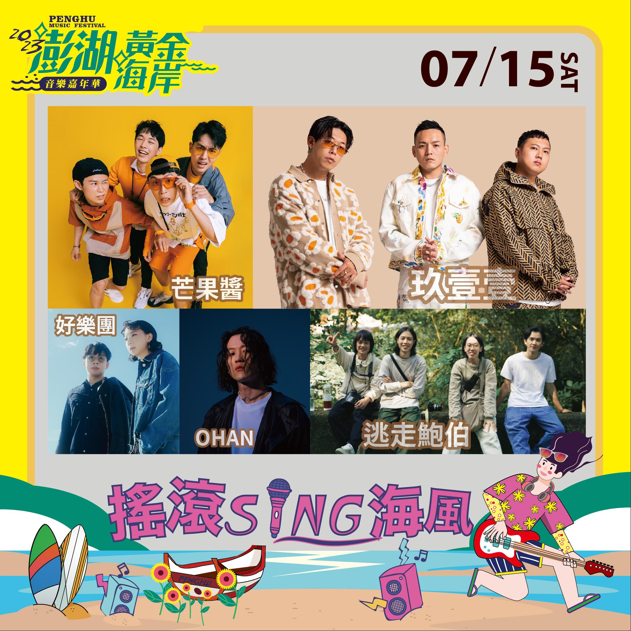 澎管處表示,「2023澎湖黃金海岸音樂嘉年華活動」於7月14、15日(星期五、六)熱情開唱,7月14日邀請麋先生、原子邦妮、Crispy脆樂團、丘與樂、火星混蛋,7月15日邀請玖壹壹、好樂團、芒果醬、OHAN、逃走鮑伯,兩日共10組超強獨立音樂演出團體陣容,讓大家一飽耳福,打造音樂嘉年華最精彩的安排,創造更多的歡樂及笑容。