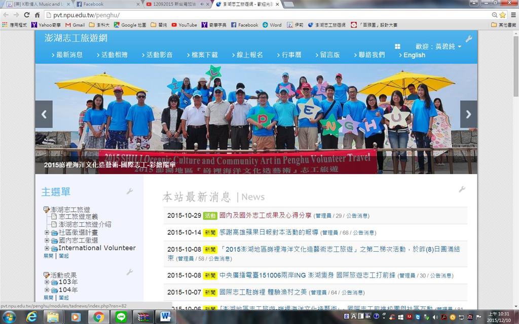 本處於104年辦理「澎湖國家風景區之志工旅遊活動網頁平台建置與輔導社區設計操作」案,志工旅遊活動網頁平臺已完成建置,將提供有需求的社區及有意願的志工申請。