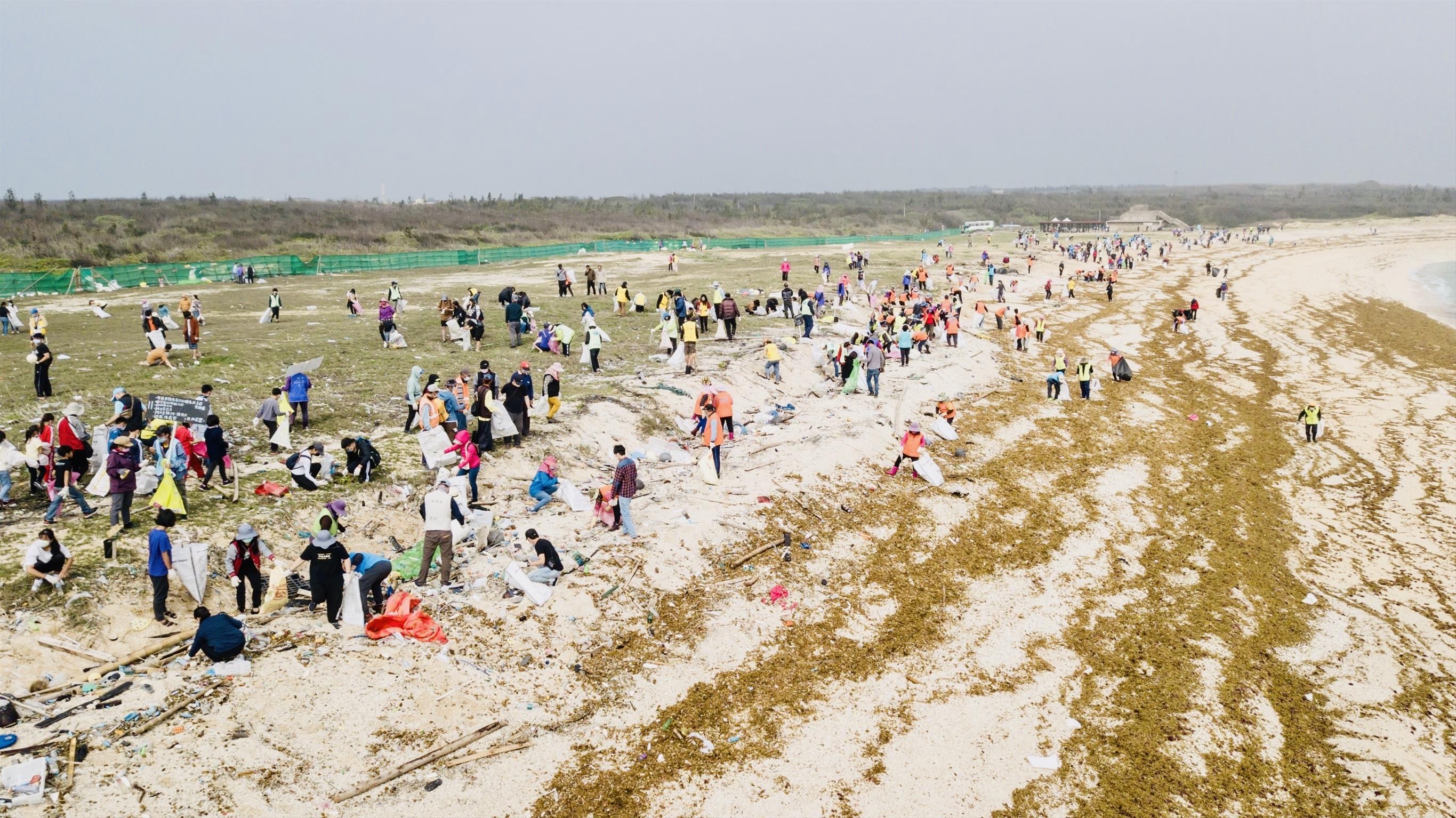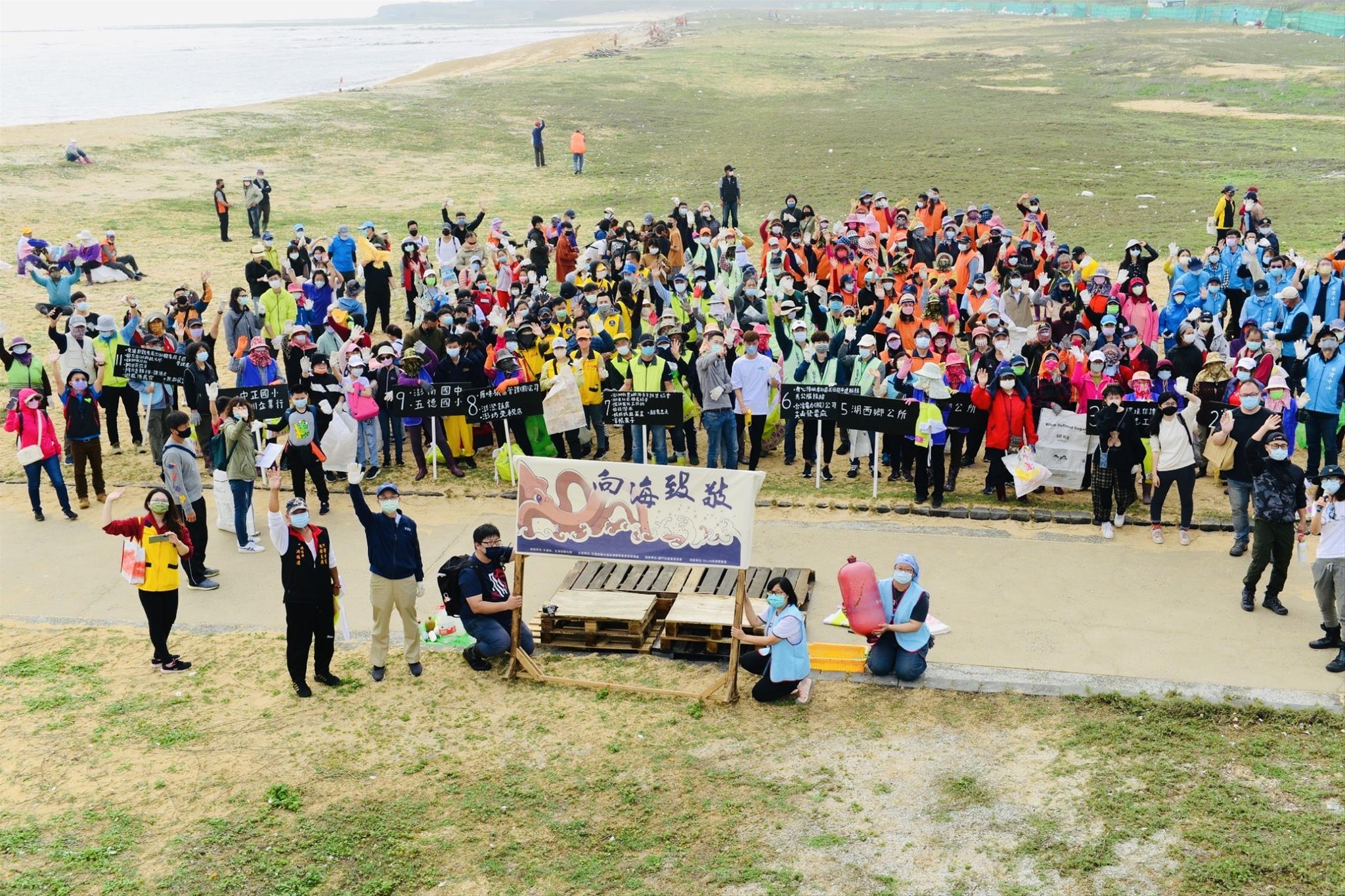 交通部觀光署澎湖國家風景區管理處(下稱澎管處)為響應行政院「向海致敬」政策,今(3/25)日上午假湖西鄉龍門後灣沙灘辦理聯合淨灘活動,聚集產官學各機關部門、觀光相關產業及民間團體、各級學校近350位的參與,一起清理冬日匯聚在沙灘上大量的海漂物,合計清理一般垃圾約1100公斤、資源回收類約500 公斤,其中塑膠垃圾佔大宗。