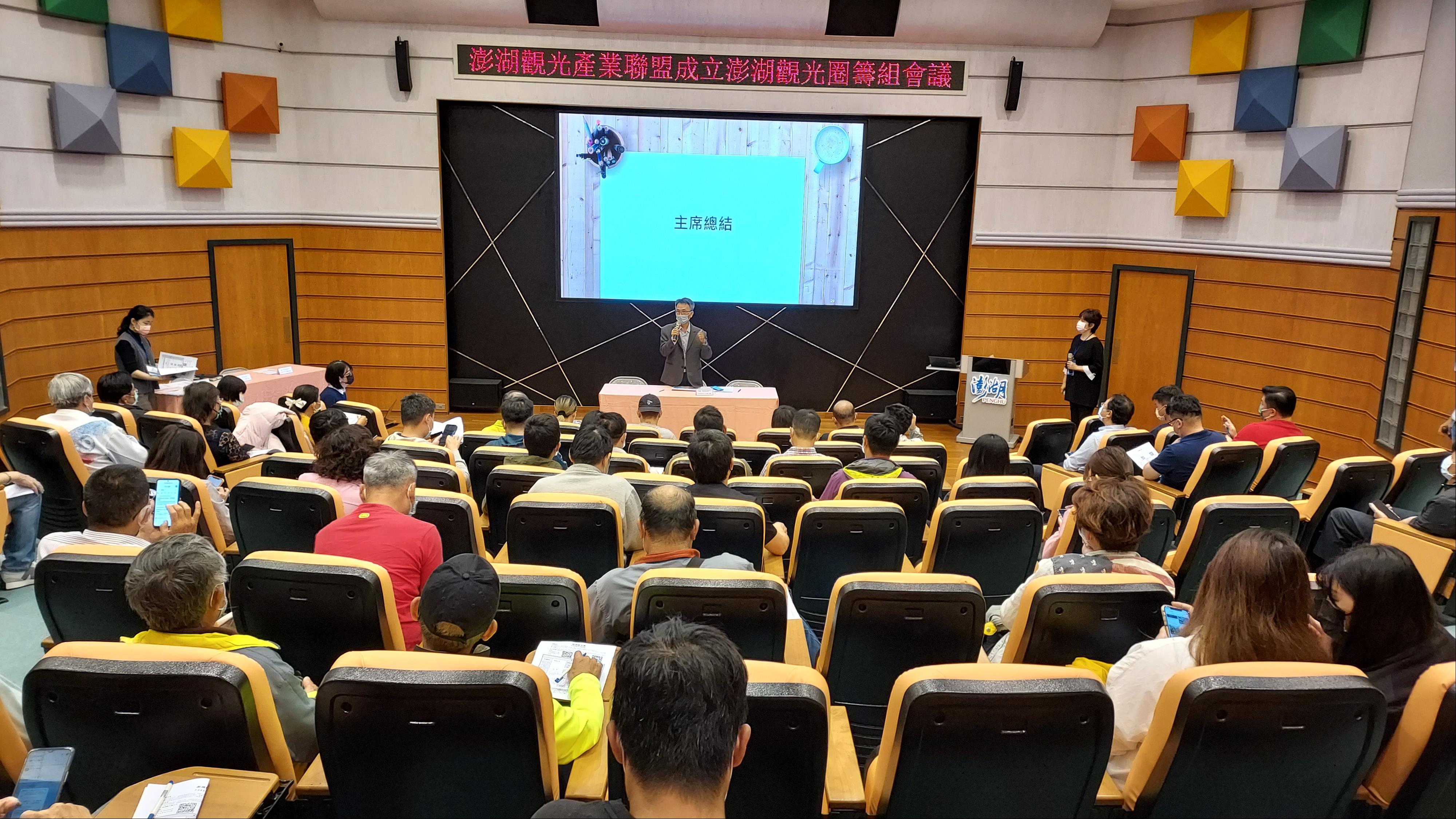 澎管處表示於111年3月31日及4月20日召開「建構澎湖觀光產業聯盟成立澎湖觀光圈第一、二次籌備會議」,籌備過程先以階段性聽取澎湖各主要觀光產業、機關、學校代表等意見,再逐步擴及社區發展協會、在地創生產業、有興趣之產業及個人參與意見交流討論,俾獲致更多共識,經過籌備會討論,對於澎湖觀光圈未來朝以自主永續營運機制、品牌優化、觀光圈成員加入資格等事項已有初步共識並開始籌組,將邀請食宿遊購行產官學研公協會等單位機構代表或個人身份,加入澎湖觀光圈LINE社群,成為觀光圈成員,澎湖觀光圈目前為非公協會性質之彈性聯盟組織,LINE社群做為組織與成員間連繫平台,未來觀光圈是否成立立案協會,仍尊重澎湖觀光圈成員之意見及共同決定。