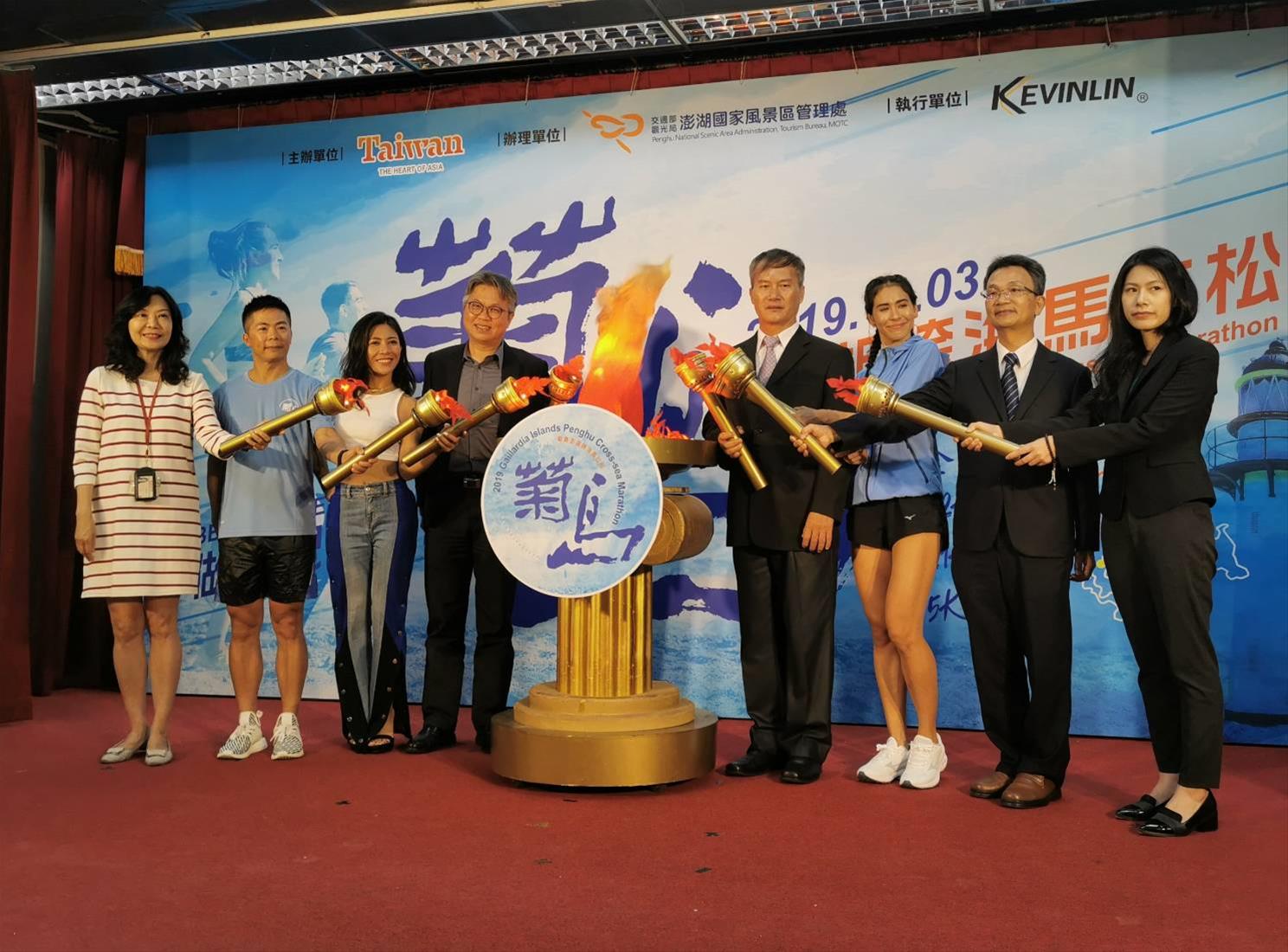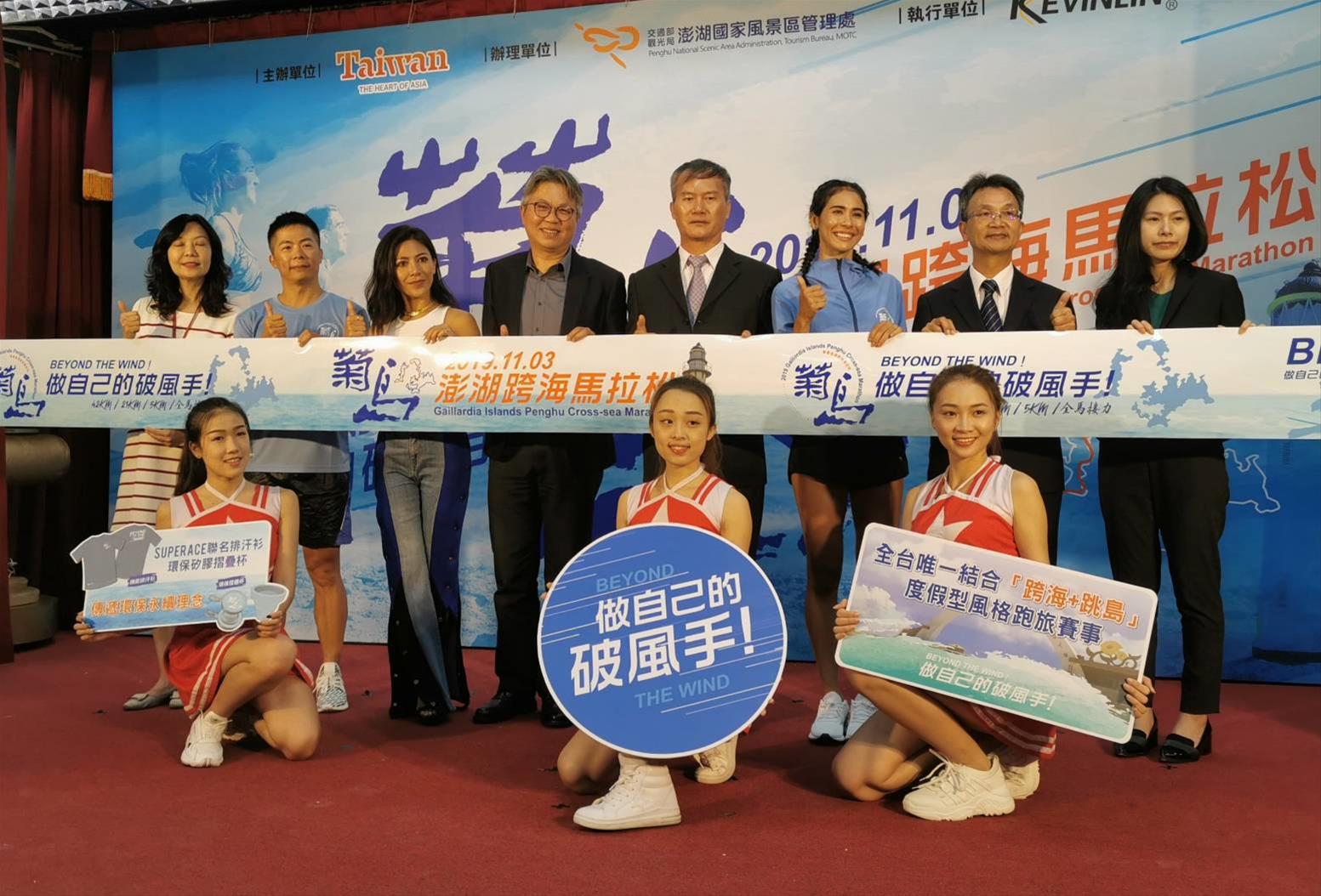 本活動宣傳記者會於本(9)月18日下午2時假交通部觀光署旅遊服務中心舉辦,由交通部觀光署周副局長廷彰蒞臨主持,現場嘉賓雲集包含有澎湖縣政府蔡參議淇賢及交通部觀光署澎湖國家風景區管理處許處長宗民、交通部觀光署旅遊服務中心方主任正光、遠東航空公司盧副總紀融、澎湖福朋喜來登酒店廖經理麗瀅等貴賓出席參加,一同來為澎湖秋瘋季系列壓軸活動之「2019菊島澎湖跨海馬拉松」活動揭幕啟跑,本屆特別定調「做自己的破風手」為主題,呼應跑者不畏澎湖陣風「逆風而跑」,將澎湖絕美景色、小鎮特色風情、在地美食與濃厚人情味推廣至全球,期吸引更多國內外旅客造訪,以提高台灣能見度。