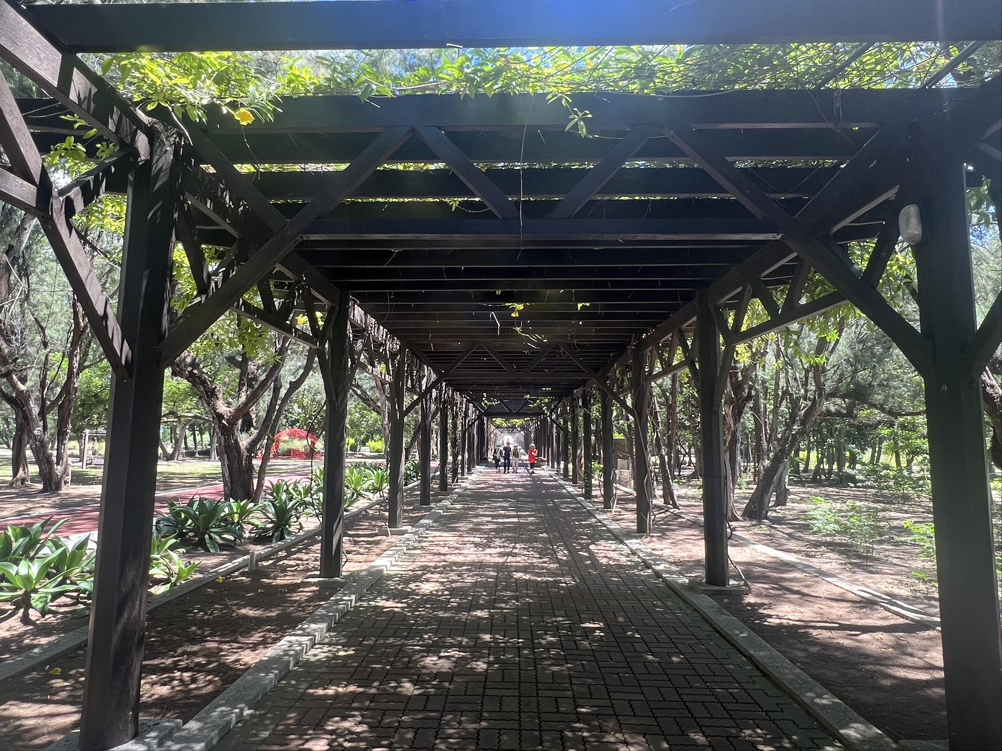 除此之外,澎管處今年亦於中央廊道加強修剪枝幹、落葉清理,增加陽光通透性,截至6月止共計清運枯枝落葉超過80車次,並修繕廊道內兩座遭枯枝壓毀之涼亭屋頂,搭配綠化草地樹蔭,裝設噴霧系統降溫消暑,澎管處歡迎民眾遠離城市的喧囂,享受林投公園浪漫、紓壓、休閒環境,品味大自然緩慢而溫柔的步調。