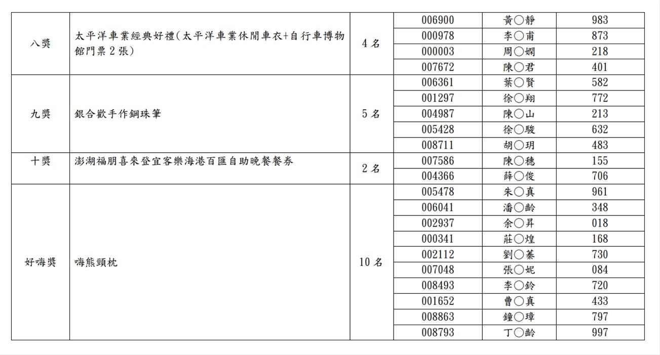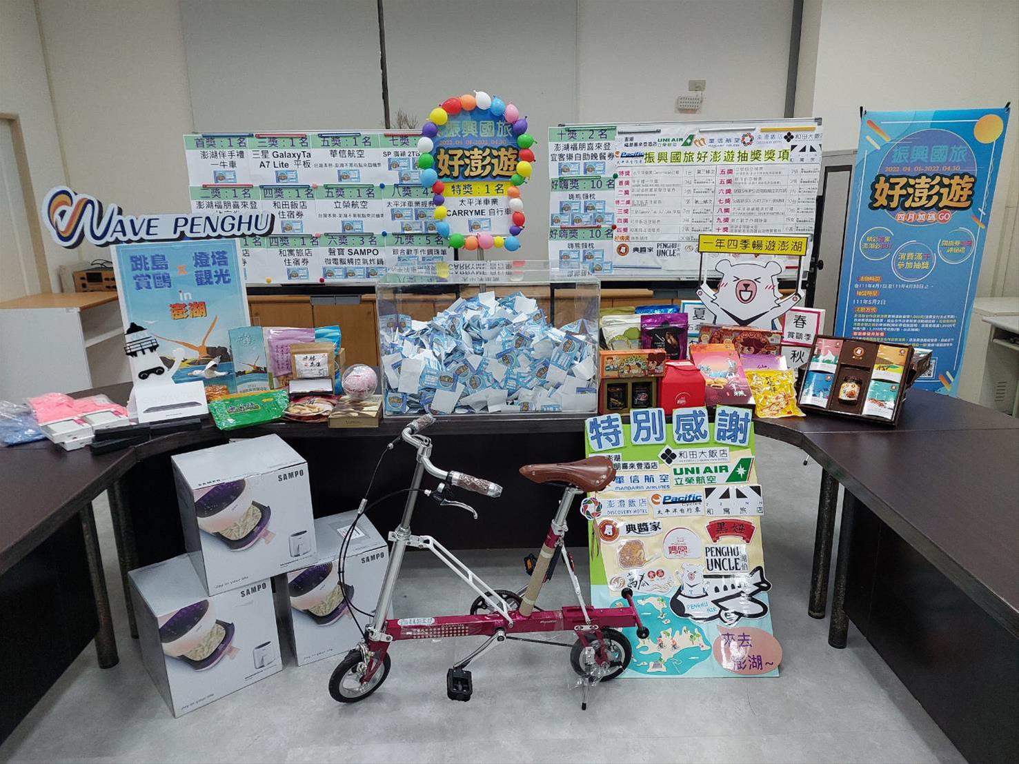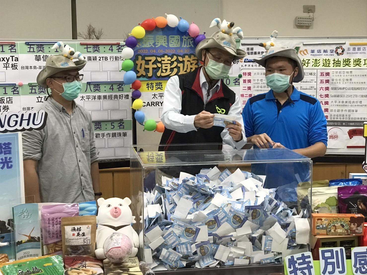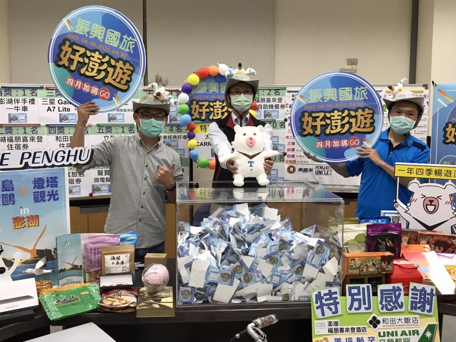 交通部觀光署澎湖國家風景區管理處推出之「振興國旅好澎遊」活動自110年11月1日起,迄今已逾170家澎湖產業共襄盛舉。已吸引超過八千名民眾參與活動,投遞8,900餘張抽獎券,今(1)日上午9時舉辦第三梯次網路直播抽獎,抽出特獎-太平洋車業Carryme自行車、首獎-澎湖伴手禮一牛車及澎湖福朋喜來登酒店、澎澄飯店、和田飯店、和寓旅店等知名旅宿住宿券、華信航空及立榮航空之台灣-澎湖不限航點來回機票等眾多好禮,共計逾30份各式獎品分別由來自台灣赴澎湖旅遊的遊客及澎湖在地民眾抱走好禮。