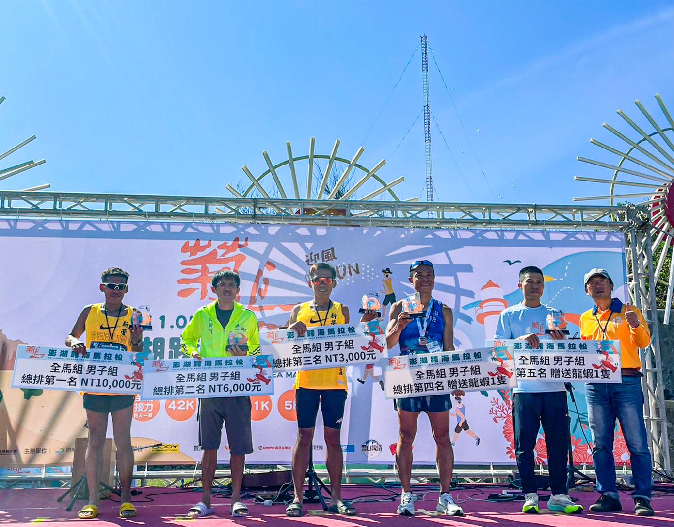 陳芷盈成績為01:42:35,另42公里、21公里前五名,全馬接力組第一名,皆可獲得由主辦單位加碼的大龍蝦各1隻!