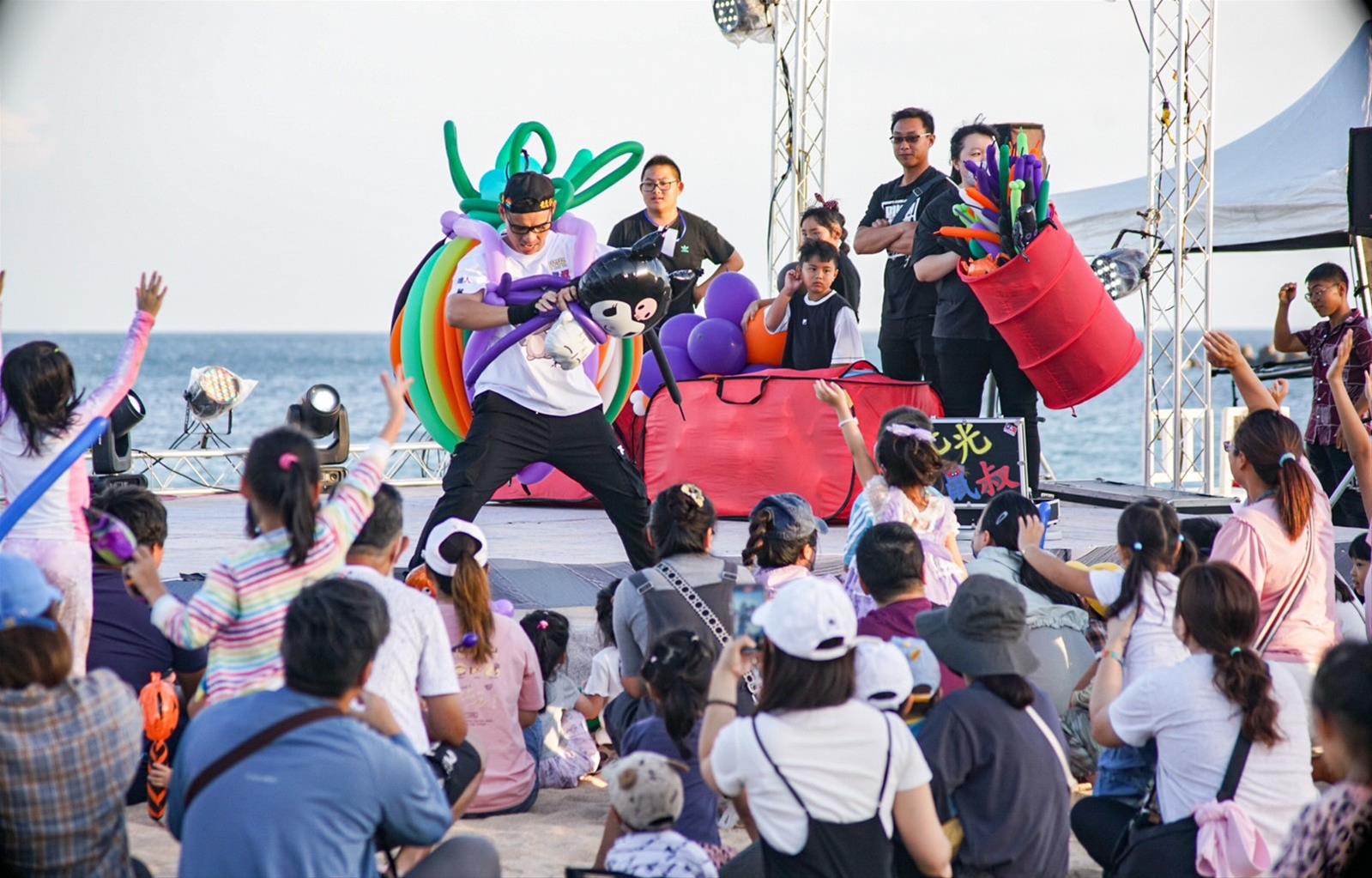 下午5點,氣球達人-光光鼠叔的表演登場,這位深受孩子們喜愛的人物靈巧地將各式氣球變幻為逗趣造型,以輕鬆幽默的方式互動,讓現場充滿了孩子們的歡聲笑語,也讓大家在愉快的氛圍中享受休閒的午後時光。緊接著,由馬公市幼兒園的小朋友們帶來了可愛的歌舞表演。他們以稚氣的表現與認真的態度贏得了觀眾的陣陣掌聲,展現出當地幼兒教育的活力與創意。