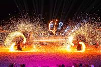 第三幕「鹹水的火花」:火光燃起象徵澎湖魂魄的火焰,連結過去、現在與未來,喚醒每個觀眾的熱血與力量。高達三層樓的火焰與20公尺長的火花將澎湖的夜晚點燃,為這場演出畫下壯麗的句點,強調火光與人文精神的融合。 除了精彩的演出與活動外,現場還設有抽獎活動,獎品非常豐富,人人皆有獎,其中更有市集消費卷100元!獎品數量僅限300份,送完為止!也有限量100份沙畫體驗,活動精采豐富,為大家帶來一個視覺與感官的雙重享受,適合全家大小一同參與。這是澎湖在秋日裡的一次難得盛會,大家千萬別錯過!有興趣的朋友可關注澎管處粉絲專頁,了解更多活動詳情。