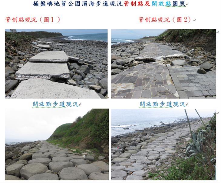 桶盤嶼地質公園濱海步道現況管制點及開放點圖照(1)