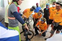 本次課程邀請自行車競賽達人林柏呈,針對自行車騎乘技巧及緊急狀況處置進行講解及演練,並聘請專業身體機能教練,教授自行車騎乘的暖身以及抽筋自解等緊急狀況時的防護技能,以及澎湖在地自行車旅遊達人許秋珍、許榮基先生,進行澎湖觀光資源、導覽解說實用技巧等分享,更乘著陽光暖暖的午後,由許宗民處長率領戶外課程,實地進行湖西黃金海岸自行車道之踩踏,藉以強化領騎夥伴之專業技能,讓每一位學員皆成為專業單車領騎達人。