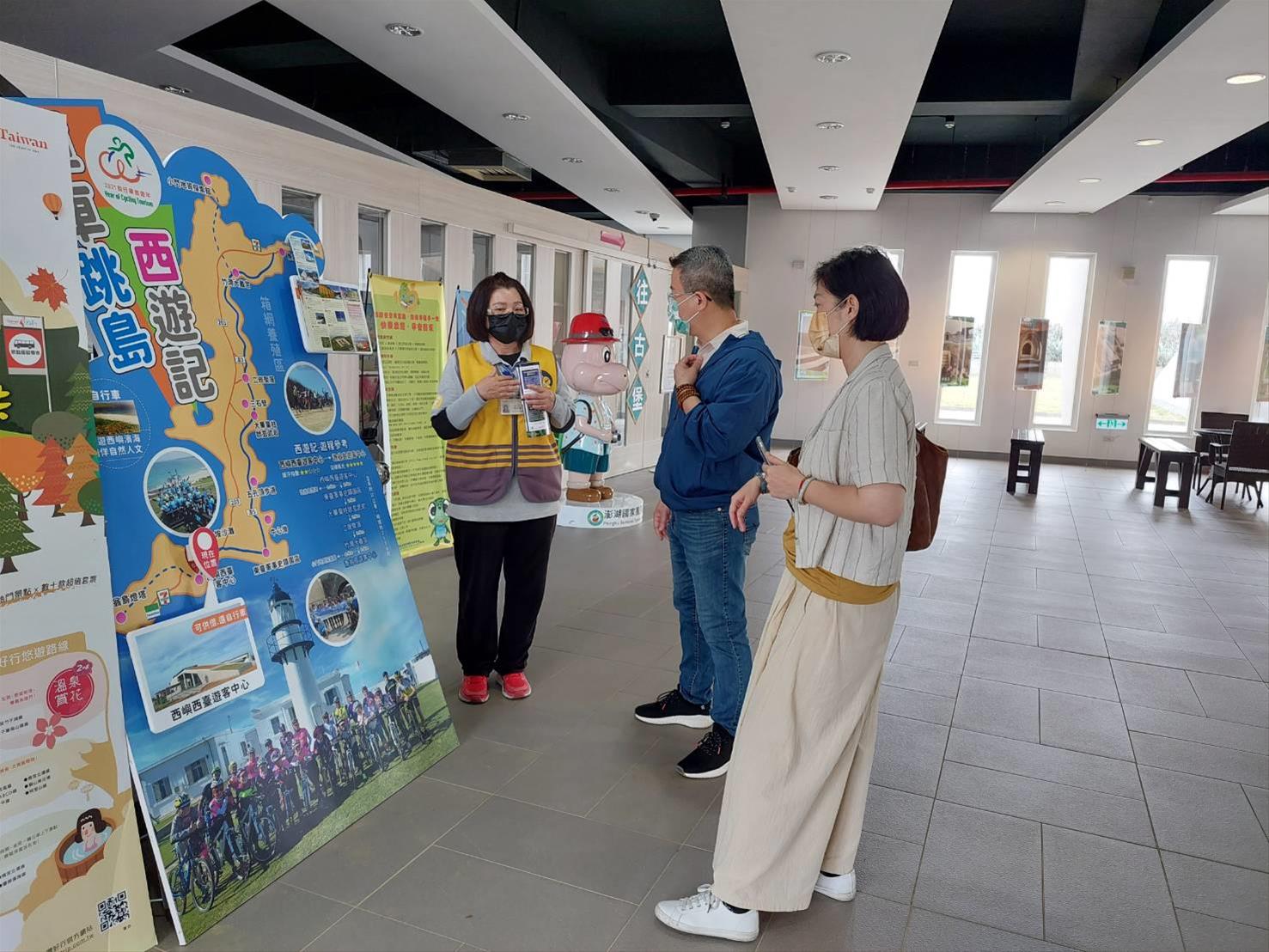 為提升遊客中心服務品質,澎管處對於管轄之遊客中心除定期辦理教育訓練深化同仁旅遊專業知識與服務品質外,並針對遊客中心電話禮儀、公廁設施、人員規範及遊客中心設施等四大項訂定服務標準規範。本次聘專家至各遊客中心進行服務品質輔導,除檢視服務標準規範是否有落實外,更針對服務同仁服務應對禮儀、旅遊專業知識、各活動內容景點熟悉度、浮動碼頭步道安全設施及消防安全等,進行詳細檢視與指導。