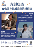 第二場青創座談將於112年7月29日(星期六)上午10:00-12:00在澎湖縣兒童及少年福利服務中心3樓多功能教室舉辦,來自新平溪煤礦博物園區的龔俊逸董事長,將分享自身在煤礦業文化傳承的經驗,以及他如何透過重建歷史場域將文化融入在地方遊程,達到翻轉舊園區創造新產值的經歷;另一位移居澎湖的青年-「年年有鰆」的創辦人巫佳容,則致力推廣澎湖漁業文化,從海廢到食魚教育,設計魚市場旅程、敲魚乾、標本魚拓等課程,將永續海洋議題包裝進旅遊行程、用餐體驗中,達到寓教於樂的文化觀光目標。