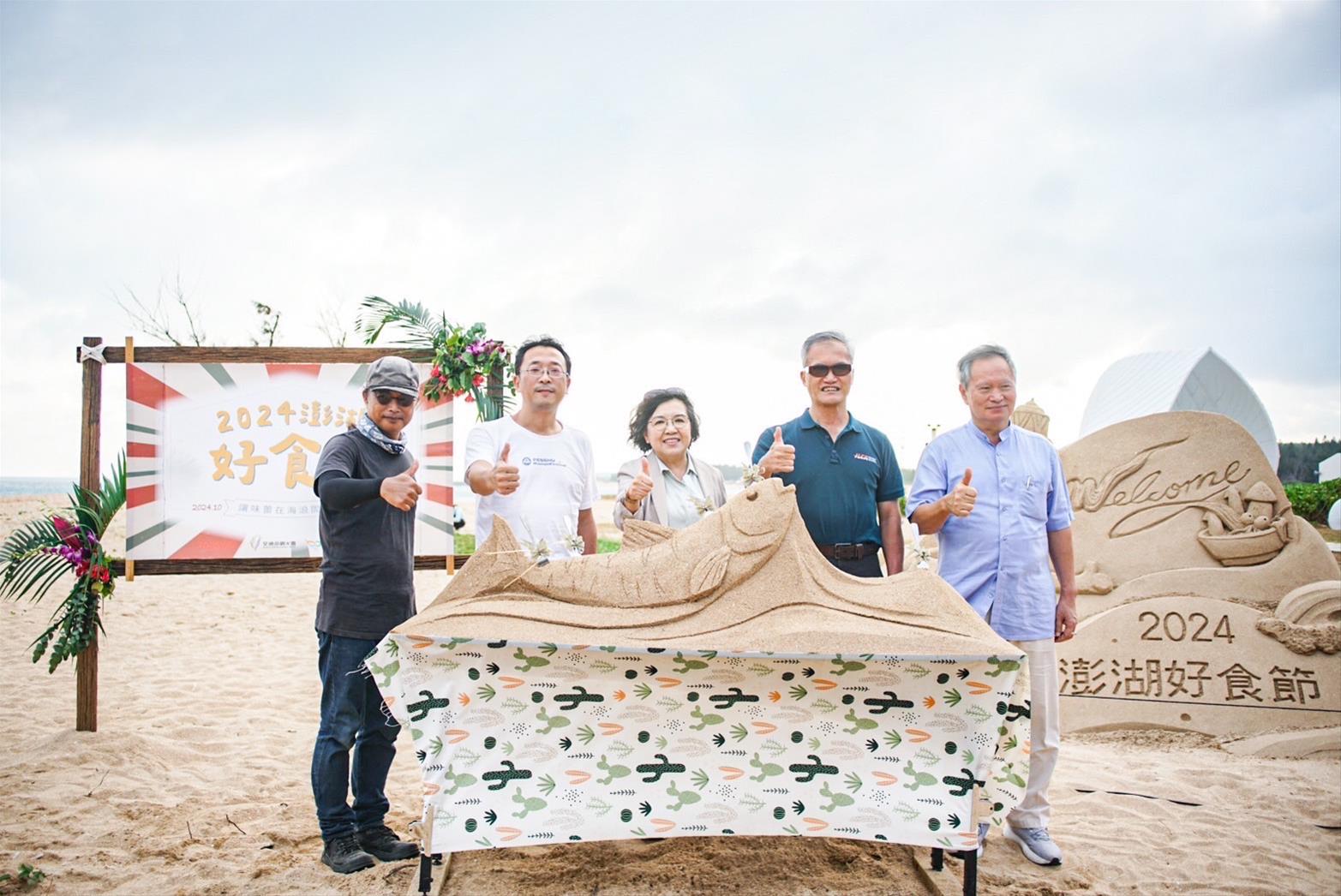 「2024澎湖好食節」今(19)日在澎湖林投沙灘正式揭幕,開幕儀式由澎管處洪志光處長主持,現場長官貴賓雲集,包含行政院南部聯合服中心陳副執行長慧玲、澎湖縣政府蔡秘書長淇賢、湖西鄉代表李麗美等,一同以黃金叉鏟土魚魠魚沙雕,意味著澎湖好食節-秋冬美食開動囉!