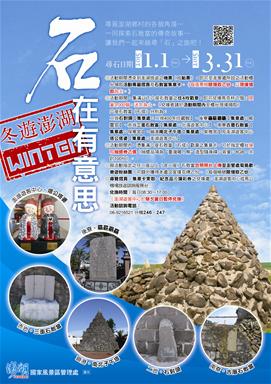 為推廣澎湖石敢當文化,本處於104年1月1日至104年3月31日期間,推出「冬遊澎湖‧石在有意思」活動,期讓更多遊客在冬季到訪澎湖時,可以放慢腳步,探尋村里巷弄間的神話傳說及民間軼事。來一趟不一樣的旅程,會發現冬遊澎湖『石』在有趣。