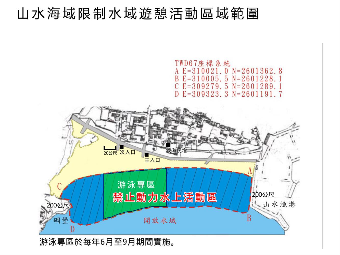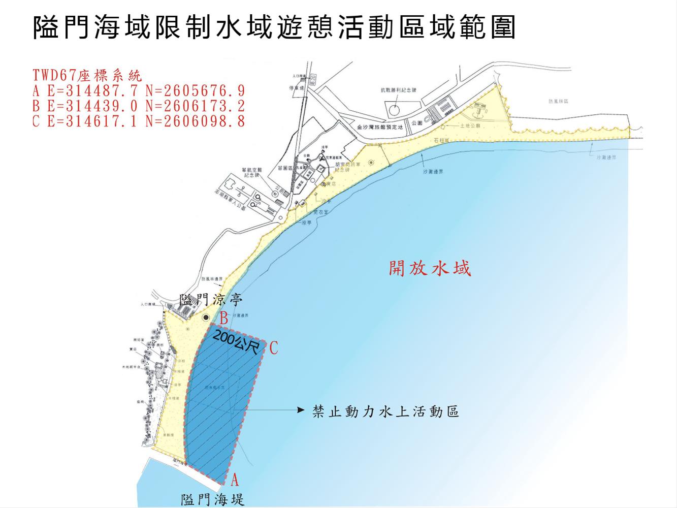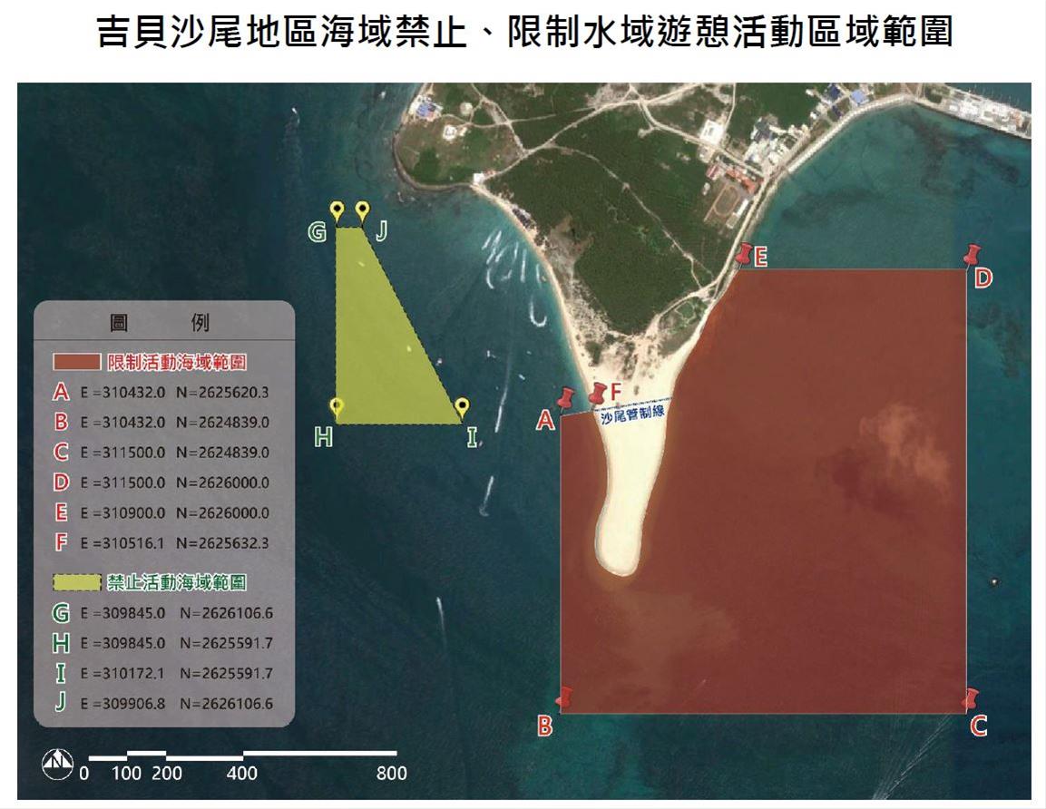 吉貝沙尾地區海域禁止、限制水域遊憩活動之範圍及種類 公告附圖1