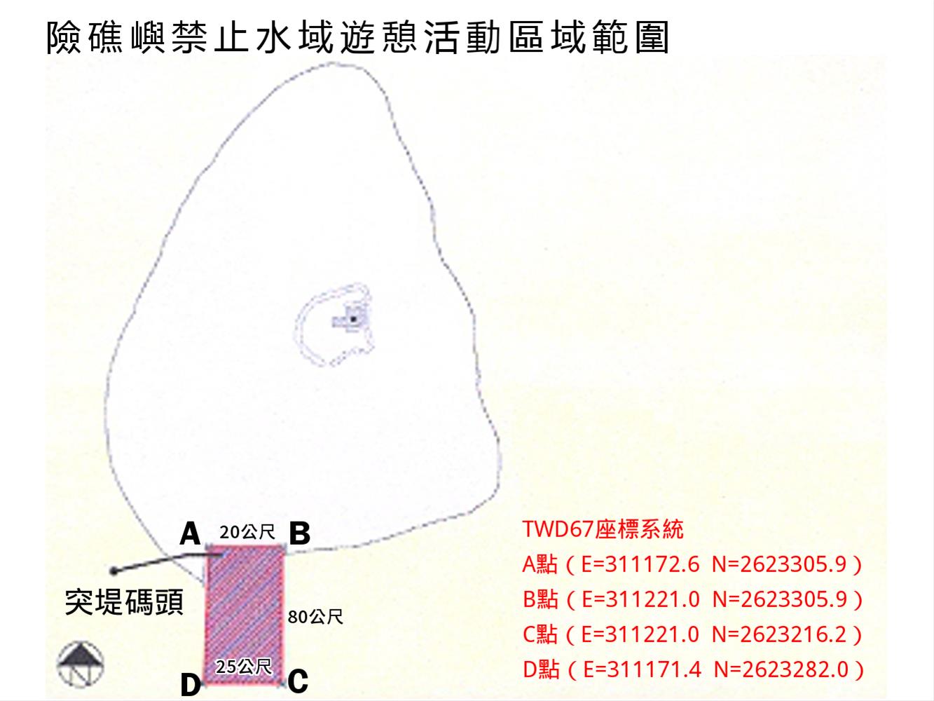 險礁嶼、姑婆嶼禁止水域遊憩活動區域範圍 公告附圖 險礁嶼
