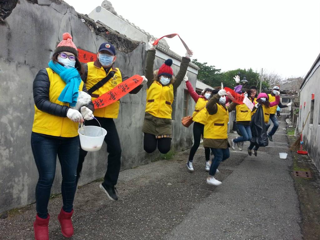本次活動於 1月31日上午9時由澎管處進行簡單的工作說明與分組之後,緊接由澎管處謝文達副處長、澎湖縣政府旅遊處陳美齡處長、馬公市公所葉竹林市長、澎坊股份有限公司陳智超經理、澎湖縣眷村青年譜愛自強協進會商累愛理事長及澎湖縣書法學會謝聰明理事長等佳賓,帶領所有參與之志工,為園區眷舍展開除舊佈新、春聯彩粧,重新張貼創意春聯來舒展美麗意境。