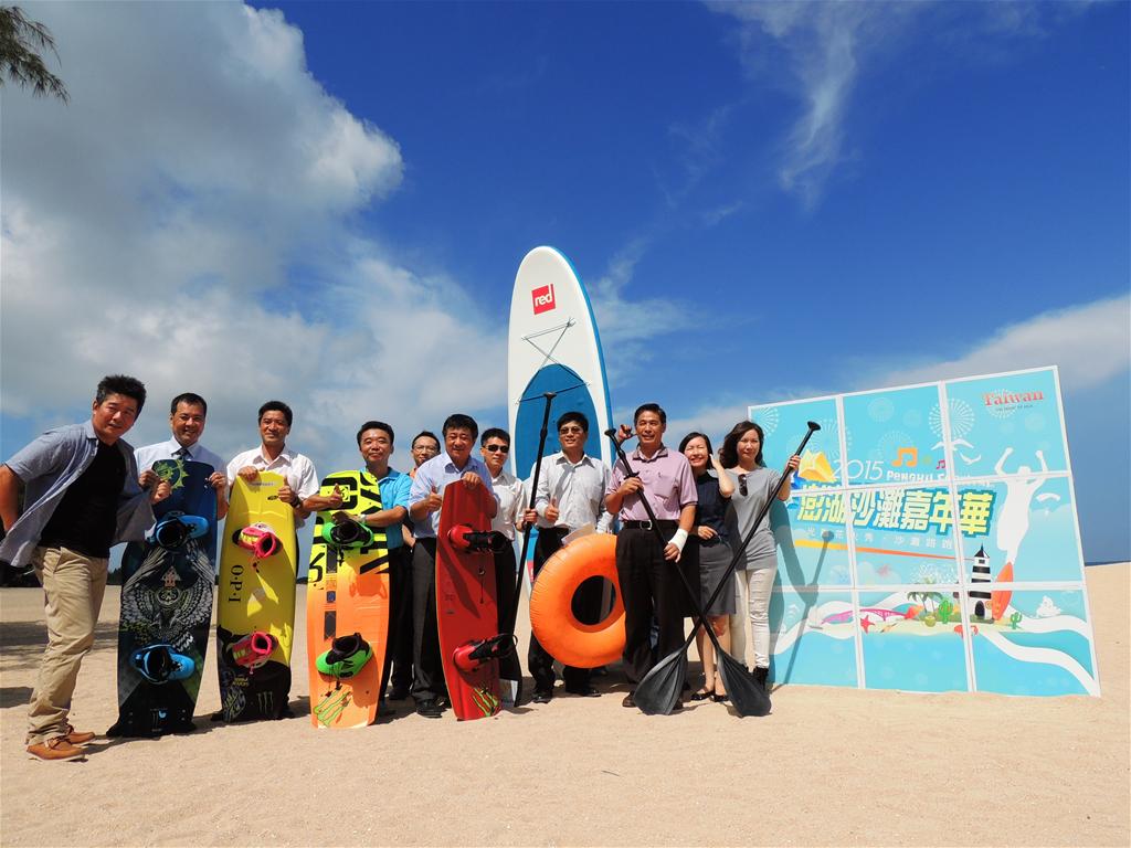 7月28日特在澎湖隘門沙灘召開記者會,現場嘉賓雲集包含了立法委員助理段湘玲、澎湖縣政府副縣長林皆興、澎湖縣政府旅遊處處長陳美齡、馬公市公所市長葉竹林、湖西鄉鄉長吳政杰及副議長陳雙全等貴賓共襄盛舉,為此記者會活動進行啟動儀式,共同來營造澎湖迎秋入冬的浪漫意境與延長觀光熱度!