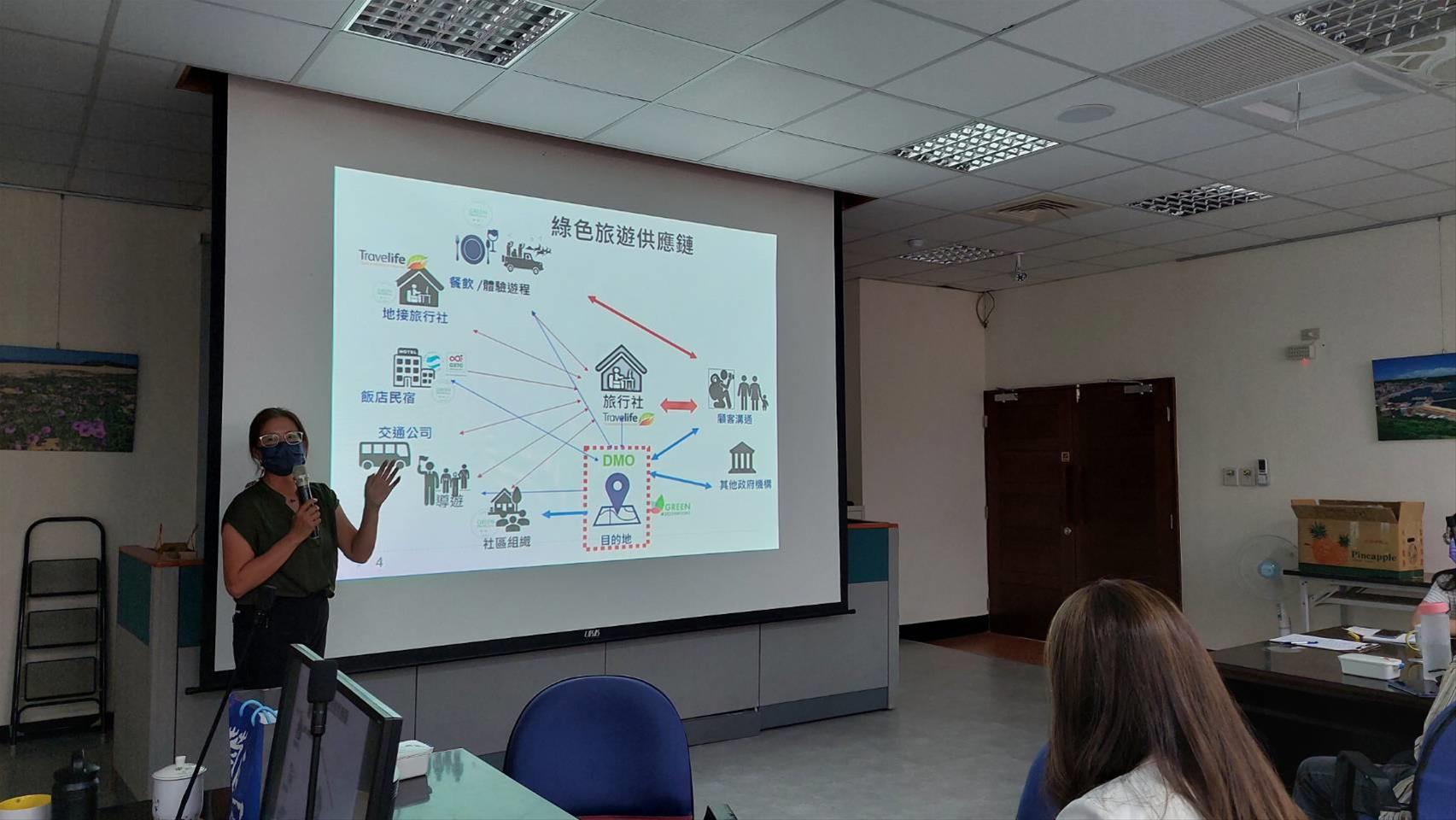 永續旅遊年度講座邀請台灣永續旅行協會陳盈潔理事長、金界旅行社股份有限公司張詩怡總經理以及東北角暨宜蘭海岸國家風景區管理處的林佳鋒技正擔任講師,探討旅遊目的地管理單位該如何制訂有效的政策、如何與在地業者合作,以及永續旅行在國際觀光趨勢下,對業者來說會是怎麼樣的一個轉變契機等議題,和參與者進行深度的分享及互動。