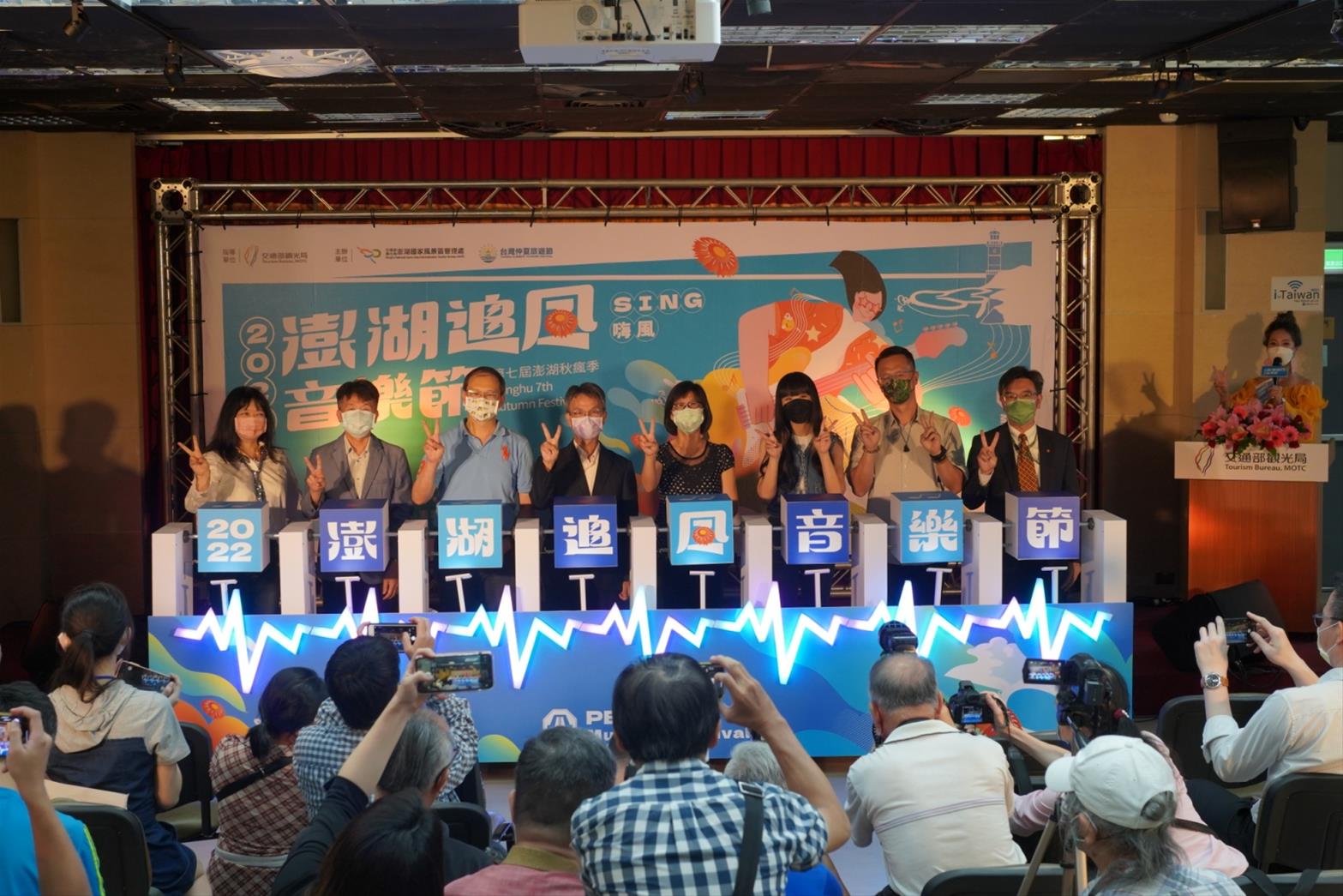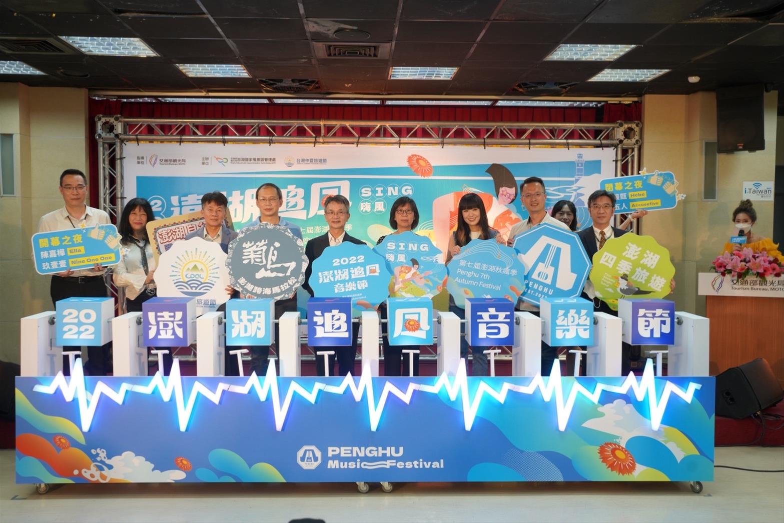 「2022澎湖追風音樂節」於今(8)日舉辦記者會,現場邀請到交通部觀光署公關室李嘉斌主任、澎湖縣政府陳晶卉參議、交通部民航局馬公航空站邱永昇主任、澎湖縣觀光協會陳仁和理事長、台灣旅行業國民旅遊發展協會蔡子健理事長、立榮航空陳永裕協理、華信航空公關室黃尤欗經理等貴賓。開場嘉賓由金曲創作才女孫盛希獻唱,炒熱現場氣氛也提前感受澎湖追風音樂節獨特魅力,並同步公開正式演出名單,開幕由ELLA、玖壹壹率先開唱,閉幕則邀請到HEBE田馥甄、告五人擔綱壓軸,主題之夜演出藝人包括八三夭、艾怡良、孫盛希、LEO王、婁峻碩、曹雅雯等共18組藝人卡司,堅強陣容將嗨翻澎湖夜晚。