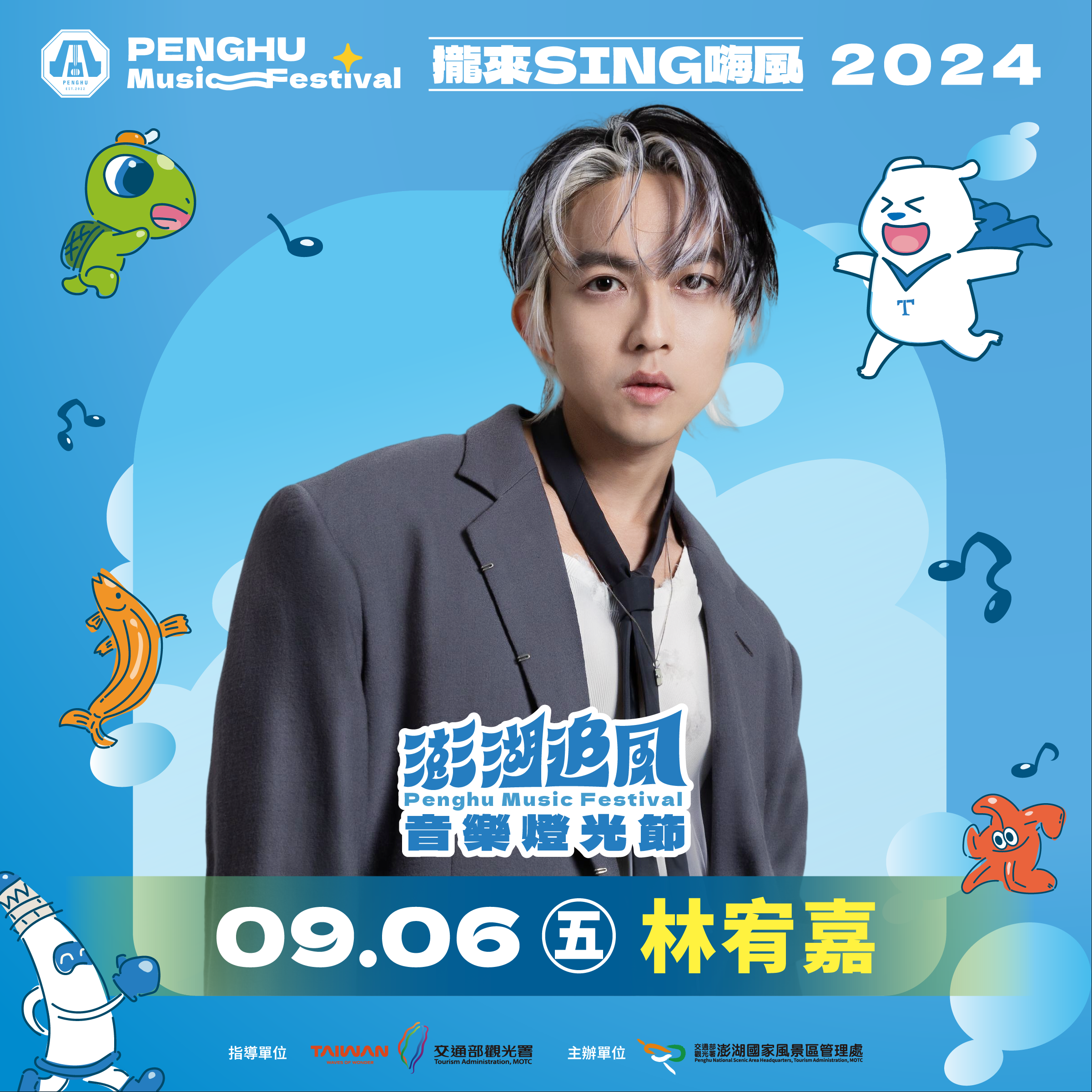 「2024澎湖追風音樂燈光節」上週五(8/30)盛大開幕,怕胖團、高爾宣及盧廣仲在澎湖觀音亭園區熱力開唱,帶領觀眾沉浸在歌聲中,相信這一波Sing嗨風大家還聽得不夠過癮,本週五將邀請金曲歌后徐佳瑩、樂壇天王林宥嘉、本土天團玖壹壹、西屯純愛組接力飆唱,邀請大家攏來Sing嗨風。
