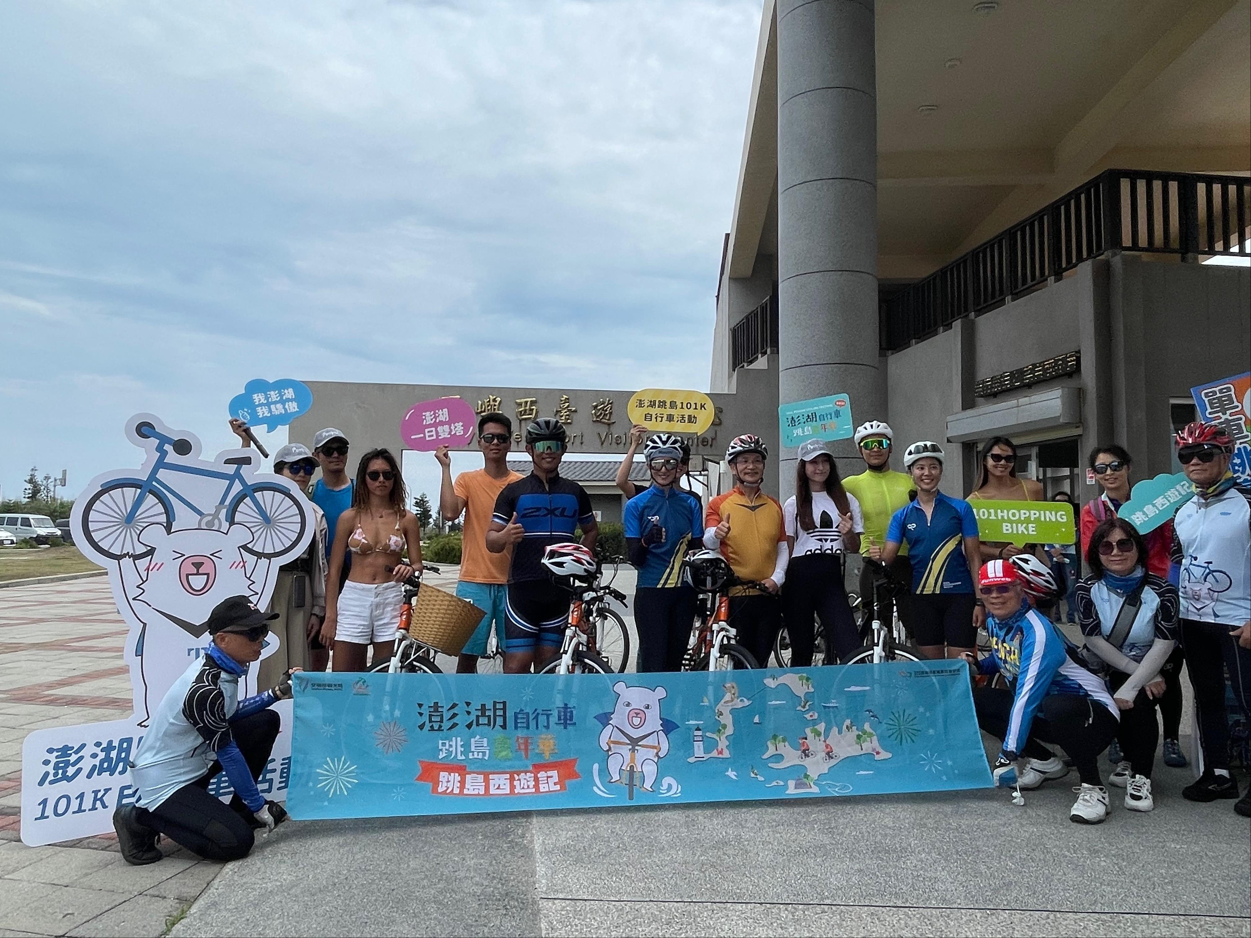 (圖說二)澎管處處長許宗民領軍鐵人美女雙主播共同辦理跳島西遊記領騎活動為台灣自行車日造勢