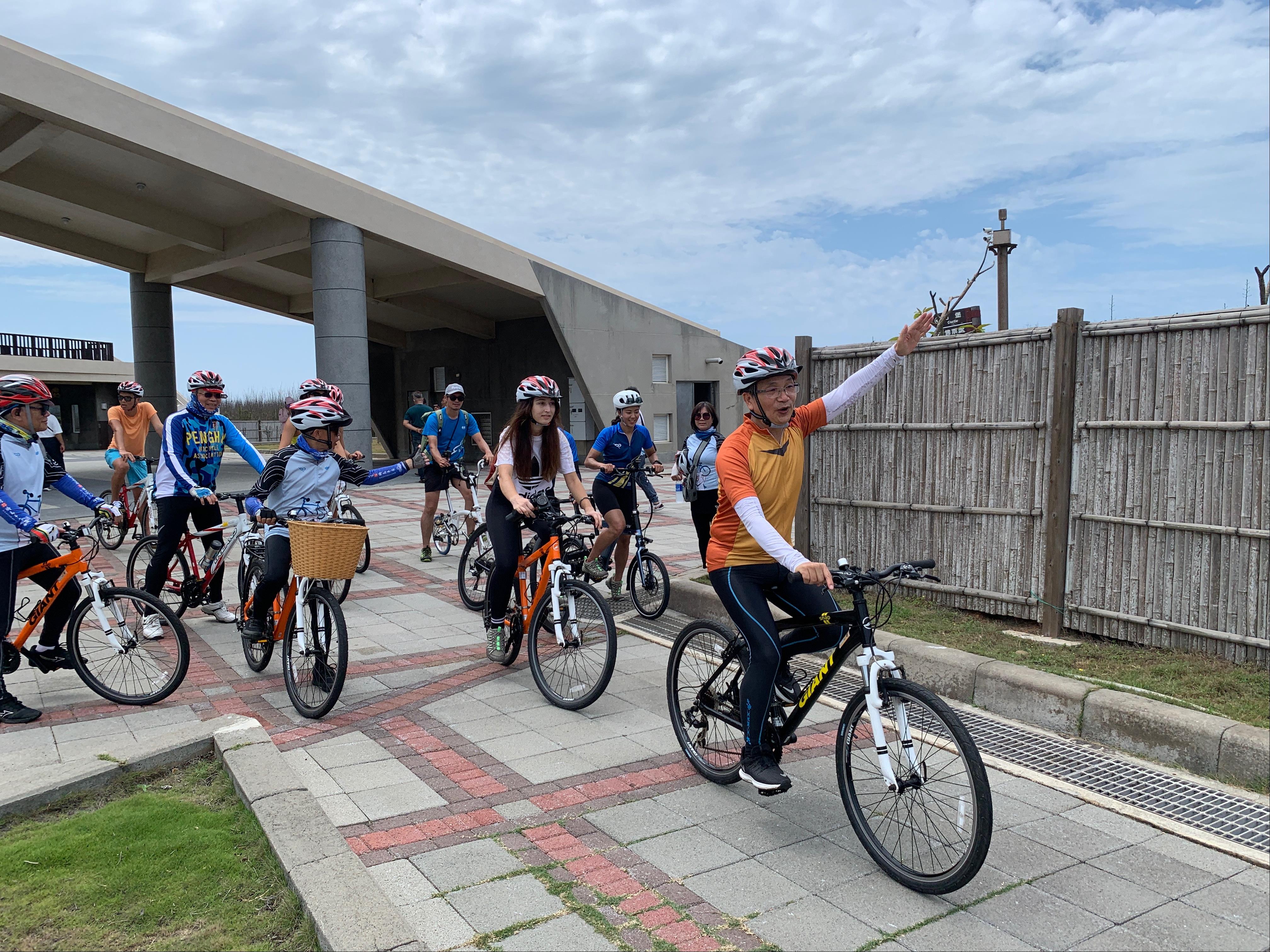 (圖三)澎湖國家風景區管理處處長許宗民(前一)進行跳島西遊記活動為台灣自行車日活動造勢