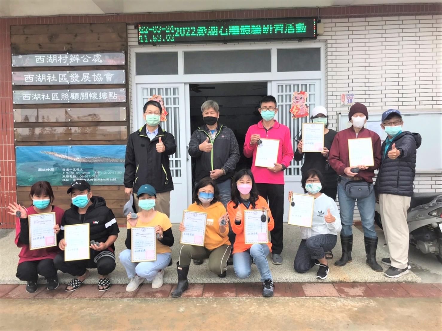 為提供澎湖七美鄉多元觀光體驗遊程,創造地方觀光之觀光效益,交通部觀光署澎湖國家風景區管理處(以下簡稱澎管處)於七美鄉西湖社區活動中心為期3天(3/22-3/24)之研習活動,在澎管處呂秘書玉鉛頒發學員研習證書,順利結束。