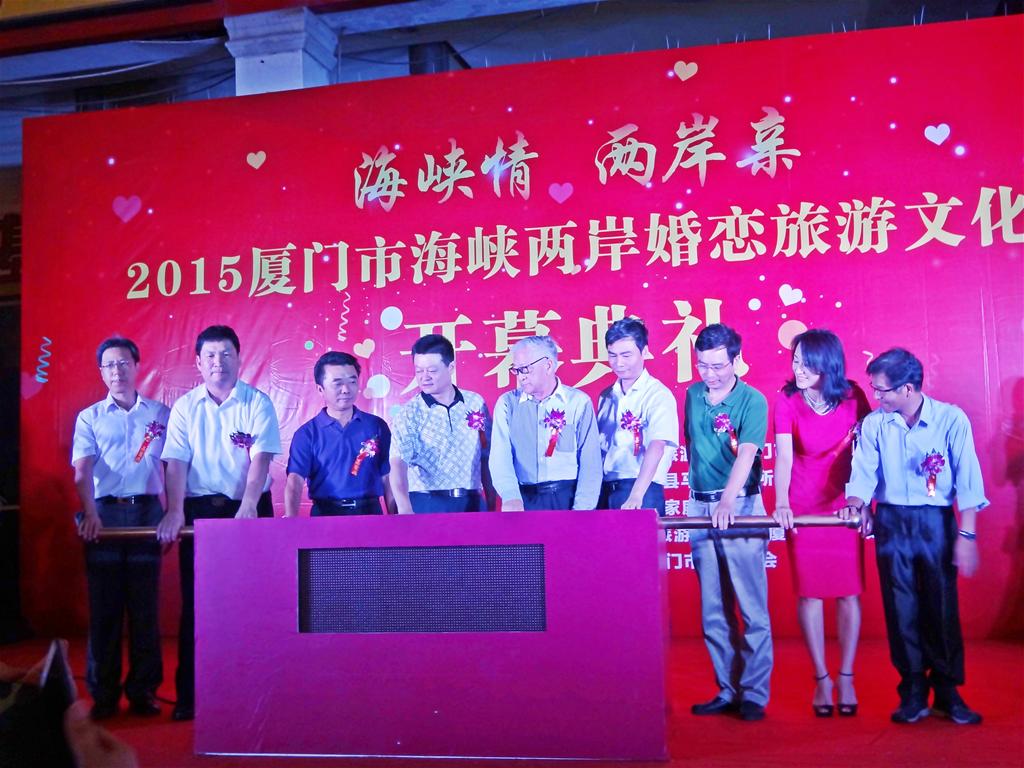 啟動儀式中張隆城處長透過互動詢問參觀人潮,最美麗的婚紗拍攝地點,現場眾口鑠金紛紛大聲說出”澎湖”引爆現場掌聲,張處長於致辭及接受廈門衛視訪問中表示,本次2015廈門市海峽兩岸婚戀旅遊文化節,主辦單位及廈門市民政局將帶領新人至澎湖舉辦兩岸集體婚禮及婚紗拍攝,本處也營造不同的愛戀主題景點提供婚攝,如最近旅遊澎湖最熱門的必到景點「摩西分海」,形塑主題為「海枯石爛見證愛」也將在下個月的澎湖婚攝行程讓參加的新人一起見證,澎湖的浪漫要大家親自真實感受,亦歡迎大家到澎湖旅遊。澎湖縣旅遊發展協會廈門市代表處主任歐修智並介紹澎湖傳統婚嫁習俗衍生之特色食品,澎湖與廈門共同之閩南文化,值得廈門人民前往。廈門民政局副局長李龍表示今年文化節主題為“海峽情·兩岸親”,緣於不少兩岸新人在美麗浪漫的鷺島廈門相知、相戀,而後相守一生,活動將在啟動後,定期舉辦與婚嫁文化有關的活動,還將組織大陸新人代表於9月18-20日赴澎湖參加集體婚禮、婚攝,而且將於年底在廈門舉辦兩岸四地(澎湖、廈門、漳州、泉州)百對新人集體婚禮,促進兩岸人民進行文化深度交流。