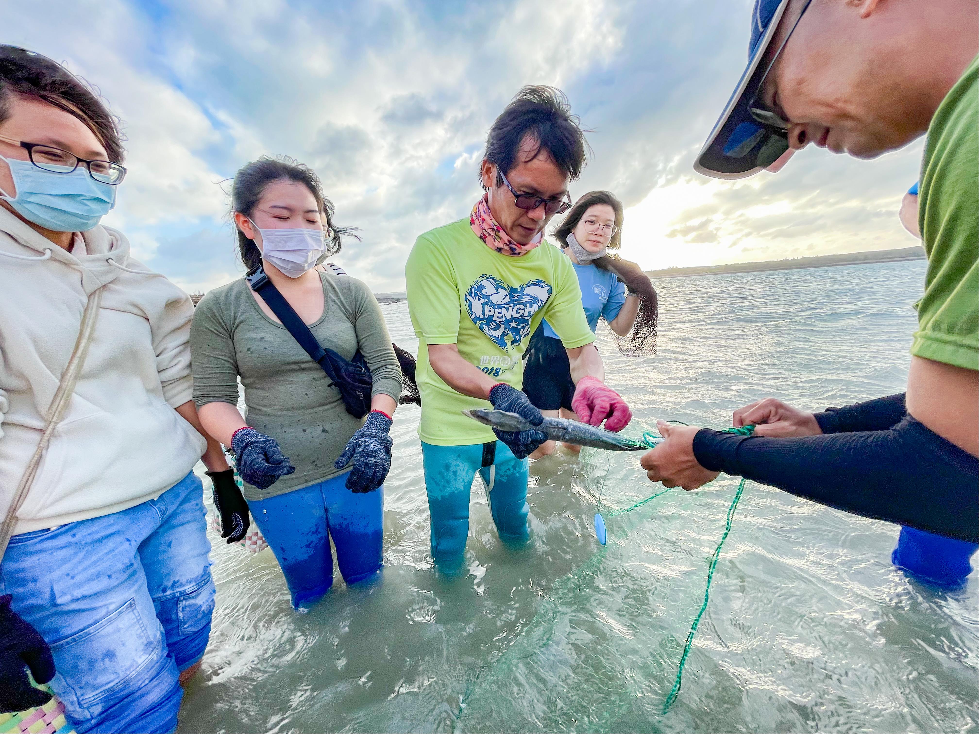 「牽罟」則是另一種古老的捕魚方式,也是對遊客來說更容易上手的漁法體驗!由經驗豐富的漁民掌握潮流與魚群移動方向,以小船載運漁網,佈放於魚群所在海域,再由岸上的人們配合漁船行進速度,同心協力拉網收魚,滿網魚蝦在岸邊閃耀著波光粼粼,此種漁法集先民智慧、眾人團結互助於一體,如今以學習教育的模式重現,亦於無形中傳達了向海致敬、與海洋生態資源共存共享的精神。