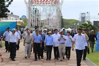 蔡總統26日由政務委員張景森、國策顧問陳光復、立法委員楊曜、交通部長林佳龍、內政部長徐國勇、交通部觀光署周永暉局長等人陪同抵達澎湖視察交通觀光等建設,首先至澎湖縣縣定古蹟馬公市觀音亭參拜,祈求風調雨順、國泰民安,接續前往觀音亭園區視察「2019澎湖國際海灣燈光節」主題燈組,除聽取交通部觀光署周永暉局長說明活動辦理情形外,並引導總統做活動園區之燈組導覽解說。