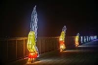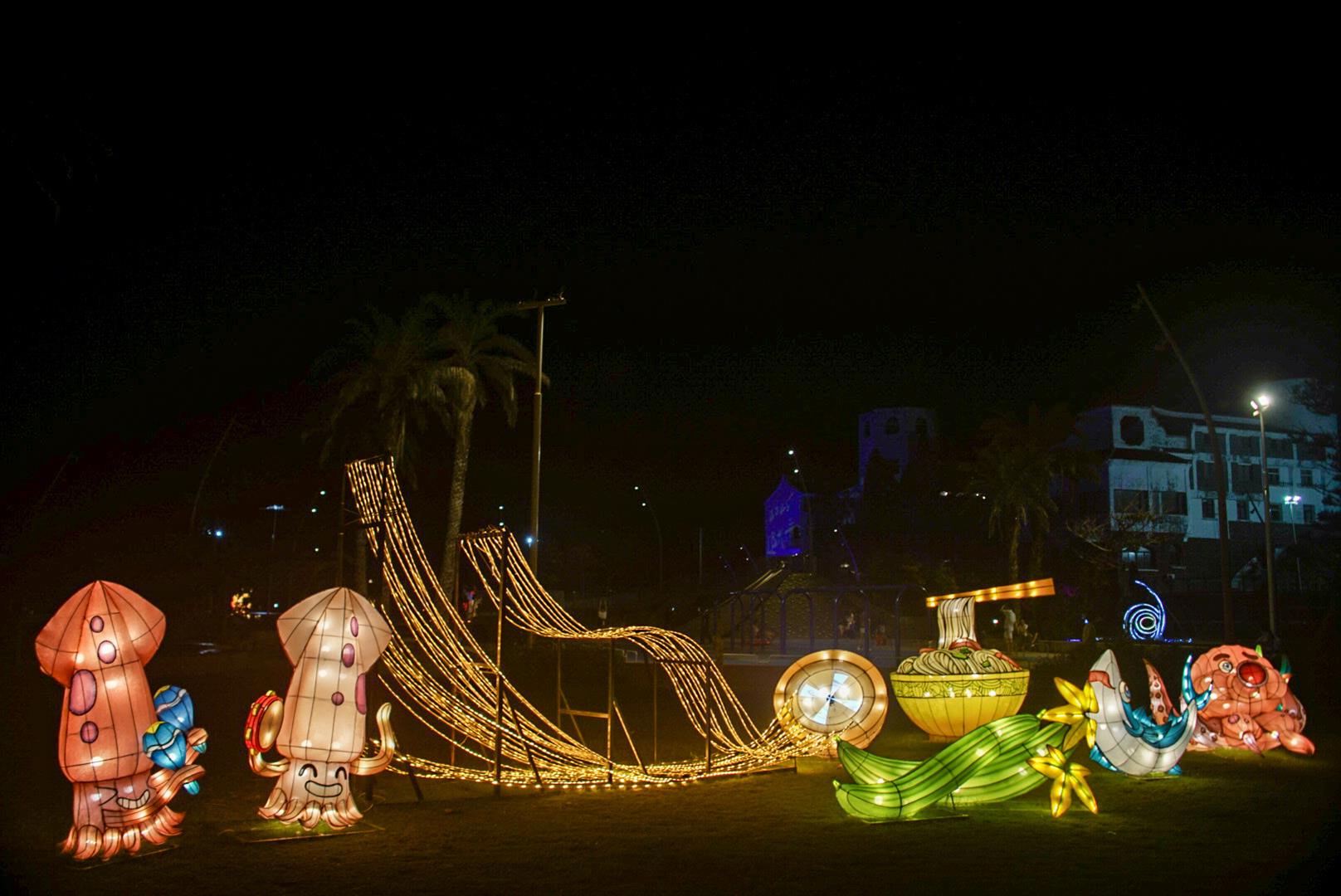 本次展演以傳統布燈、鋼線藝術、現代光影科技與多元材料混搭應用,打造多項光影作品。包括入口裝置《歡迎<光>臨》,結合「歡迎光臨」的雙關語,既象徵光影降臨、也象徵歡迎旅客到來,巧妙傳遞澎湖「菊島」的獨特海島風情。燈飾以流動光帶營造如海風掠過的動態簾幕,迎接註解澎湖歷史的閩式古帆船,打造奇幻的島嶼迎賓場景。