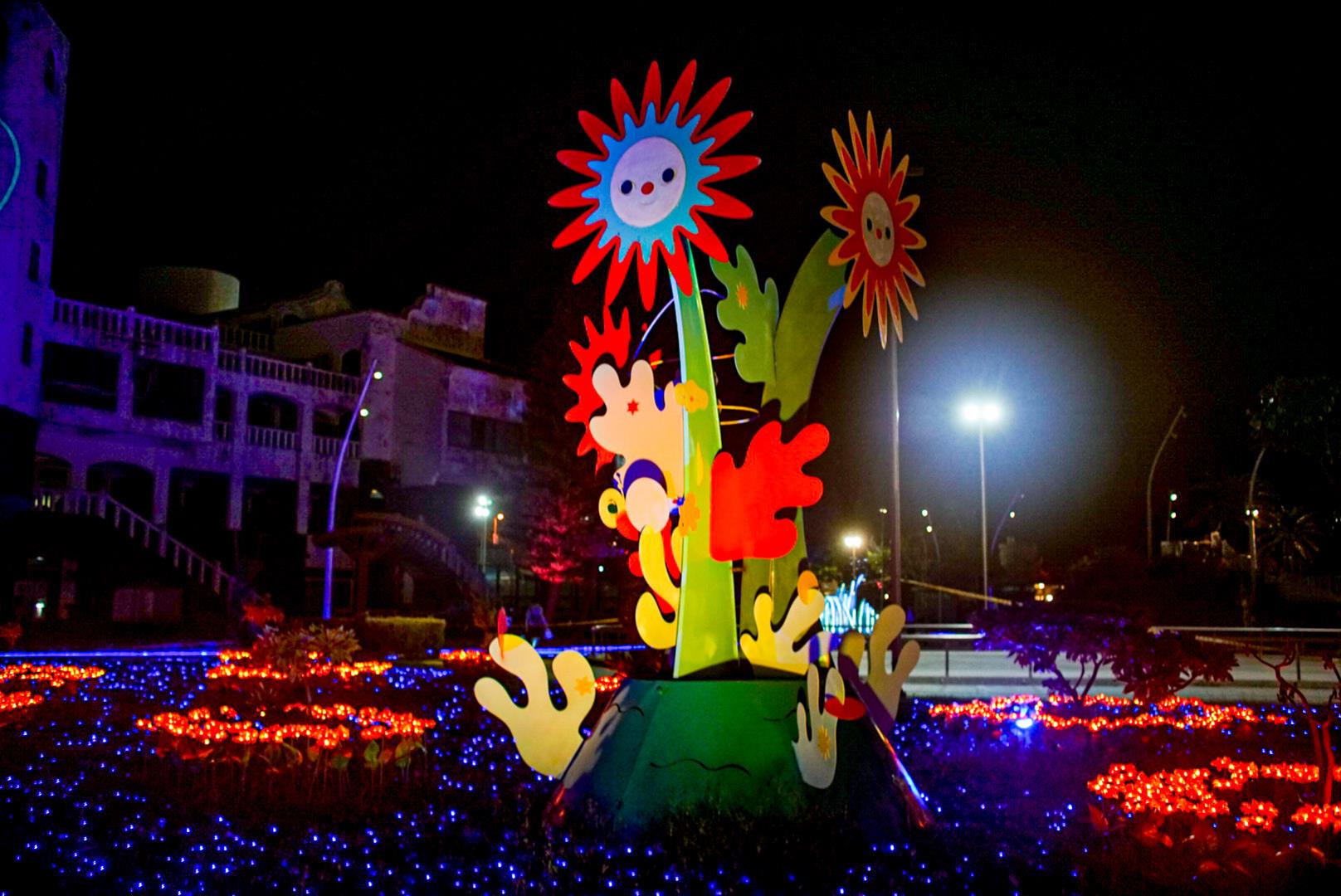 《海上之花》以藍光構築天人菊花海,描繪菊島被海洋包圍的地景美感。