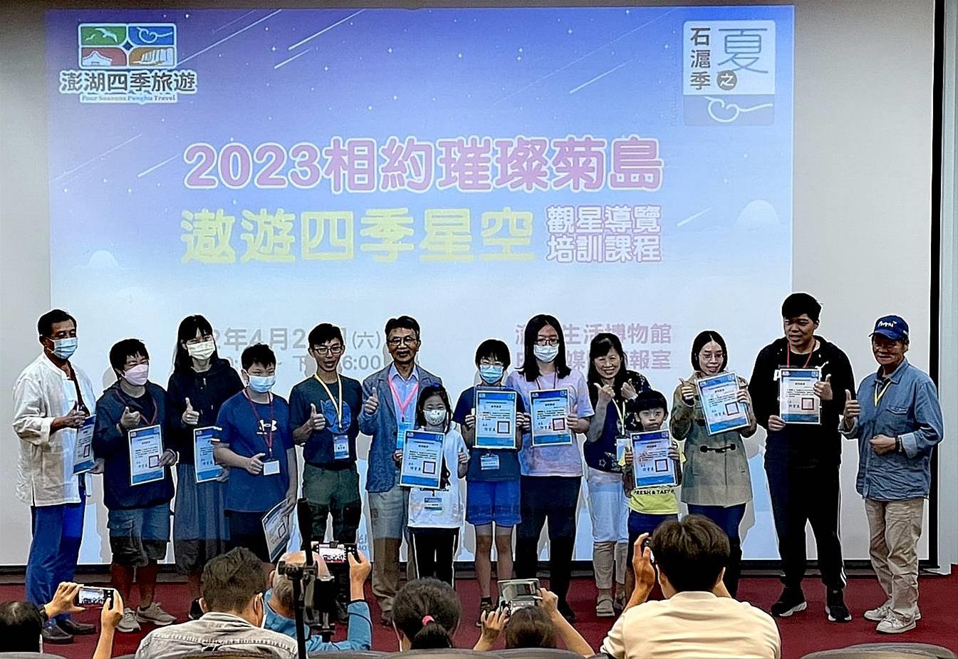 澎管處「夏之石滬季-遨遊璀璨星空」導覽培訓課程,經於4月29日一整天課程的互動與學習,共計61位學員順利結業,除了增加澎湖地區觀光從業人員的天文導覽技能外,期待未來澎湖精彩、浩瀚無垠的星際之美,讓更多遊客心留澎湖,體驗不一樣的深度旅遊。