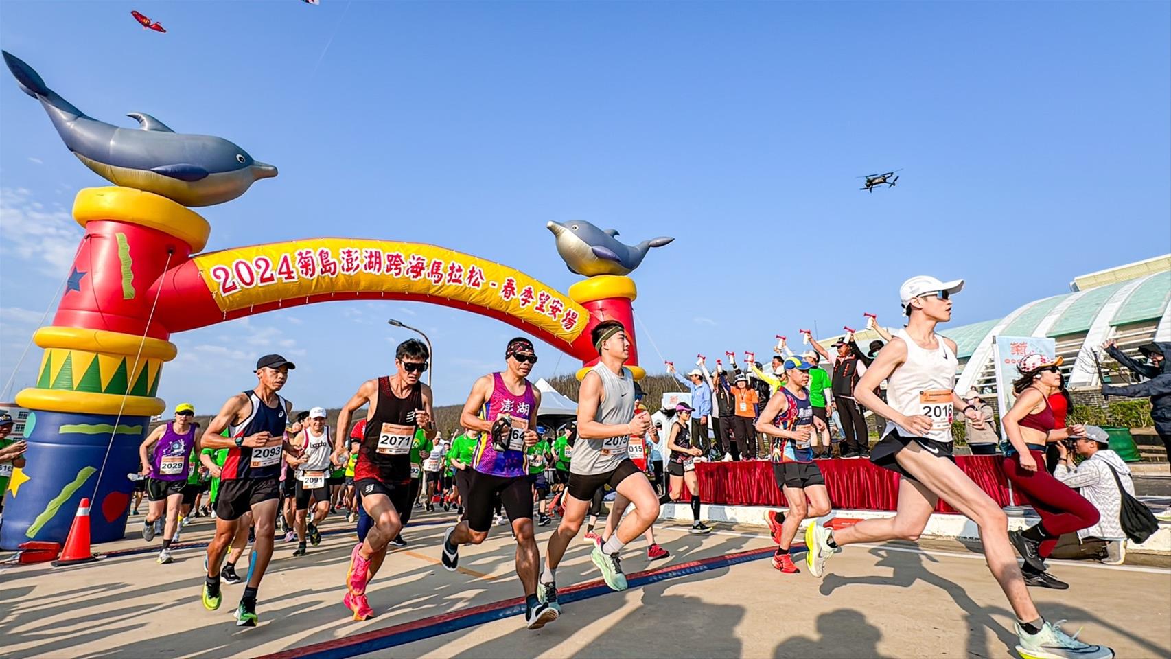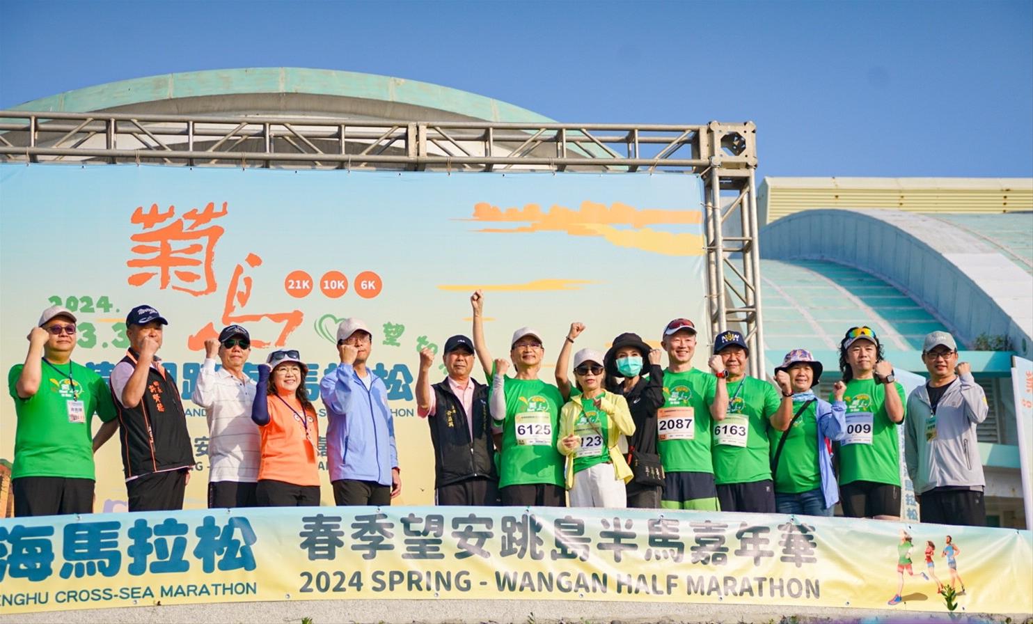 澎管處洪處長表示,每年於11月第1個星期日所舉辦的「菊島澎湖跨海馬拉松」,為全臺唯一結合跨海和跳島的度假型跑旅活動,其中別具特色的「澎湖創意美食補給站」,更是讓跑友們趨之若鶩錯過可惜!每年都能吸引海內外跑者爭相報名,為澎湖秋冬帶來可觀的經濟與觀光效益。本次望安馬拉松(有小菊馬之稱)的辦理,亦獲得望安各界與跑友們的支持與參與,除為活動注入更多創意、溫度與進步的養分外,也為望安迎來難得出現的旅遊人潮與熱鬧滾滾的氣氛。