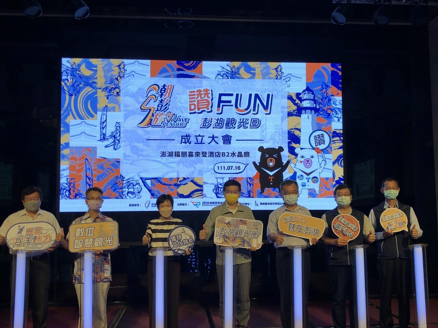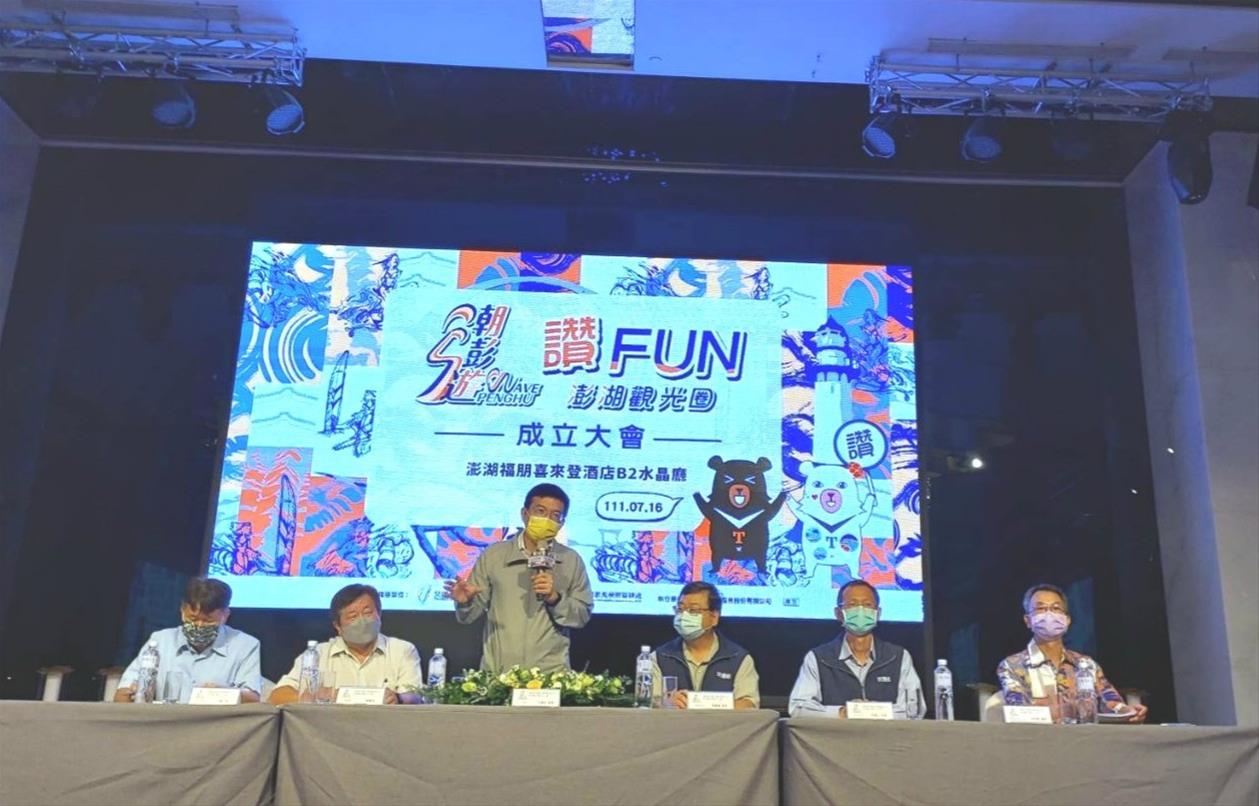 交通部觀光署澎湖國家風景區管理處(以下簡稱澎管處)以數位觀光為基礎,打造「潮澎遊」為品牌,推動澎湖永續觀光,今(16)正式成立澎湖觀光圈,並邀請交通部王國材部長、觀光局張錫聰局長、澎湖縣賴峰偉縣長、楊曜立委、劉陳昭玲議長與澎管處許宗民處長蒞臨見證。王部長指出,觀光振興的時機已經到來,期待澎湖的觀光繼續像海上明珠一般閃閃發亮。